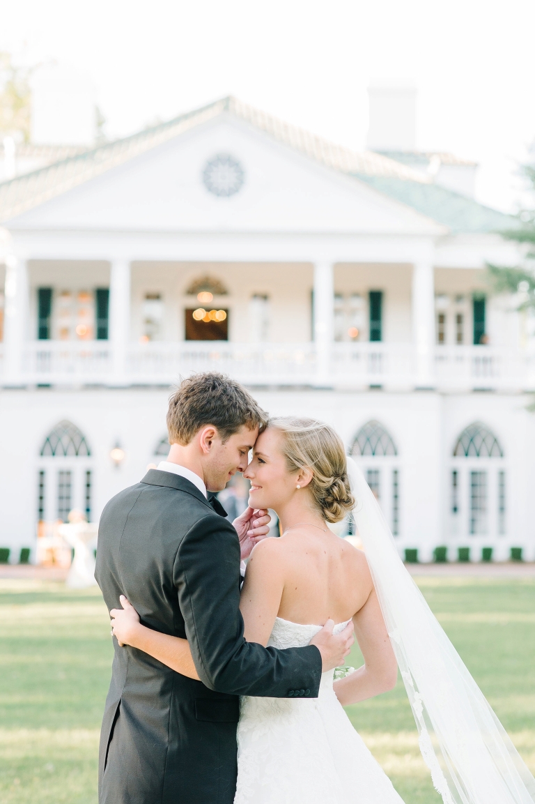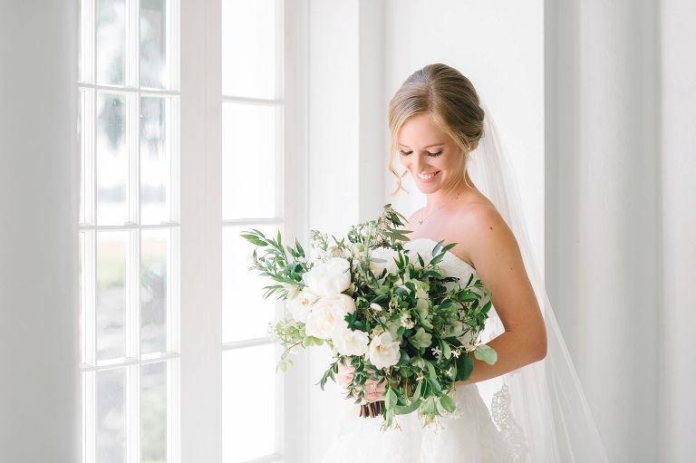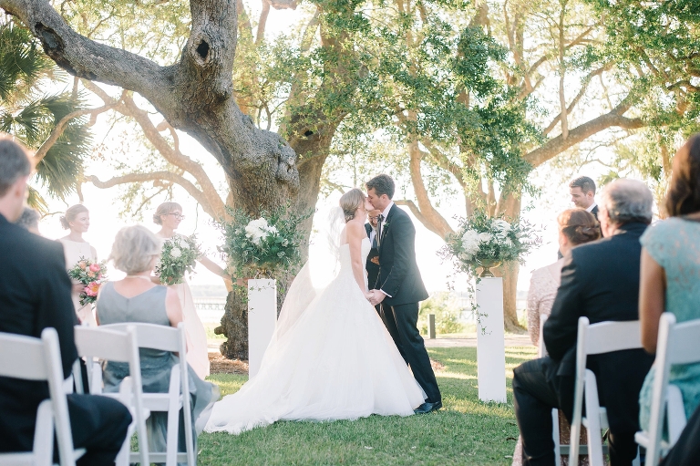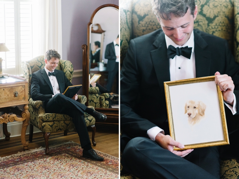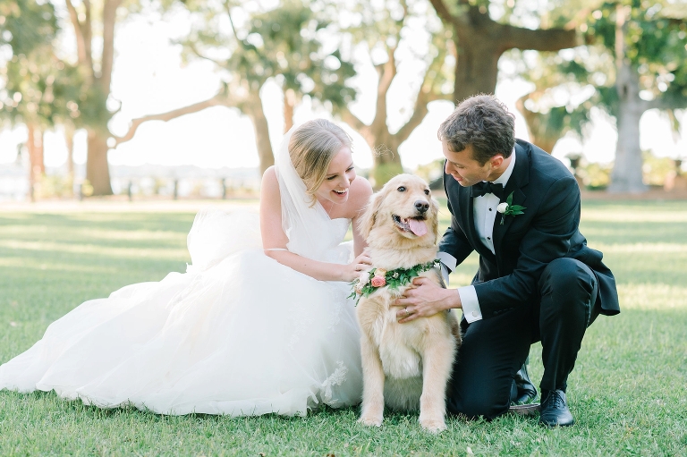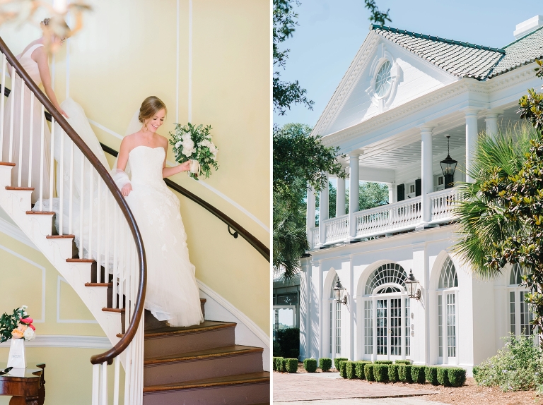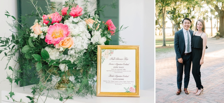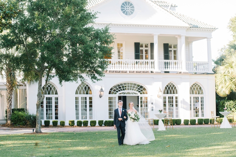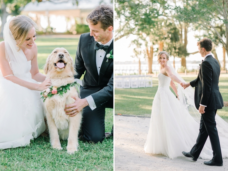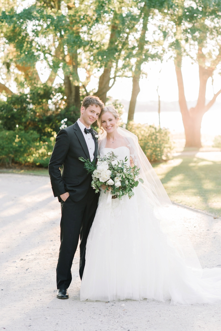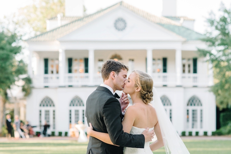 Abby and Will met in French class the spring semester of their junior year at Emory University in Atlanta, GA and by the second day of class, Will was already choosing the seat next to Abby.  It didn’t take long before he started to carry her books and walk her to her next class… if you ask him though, he’ll say he tried for months and months to ask her out, but sweet little Abby was completely oblivious!  Good thing she finally caught on and gave Will a chance to win over her heart because look at them now!! They’re living in Chapel Hill and have the most adorable Golden Retriever fur baby named Lilly, which you’ll see when you scroll through their gorgeous wedding photos!  Their wedding was one of our absolute favorites of all time at Lowndes Grove for so many reasons!  For one, Abby is an incredible oil and watercolor painter and she hand painted her entire invitation suite along with some other gorgeous wedding stationery for their big day!  (If you’re looking for someone to paint your wedding venue, your new house, or even your furbabies, EMAIL HER!  She’s incredible and has already painted out little “Home On Hickory” and gorgeous portraits of Cash and Boone for us! We’re obsessed and love that we’ll have a little piece of her talent in our own home!)  Back to the wedding though, our other favorite thing about their wedding day was the fact that they used the rooms in the historic house and the upstairs porch for their seated dinner!  The head table was out on the front porch and Abby + Will’s friends toasted them for hours, while the sun set and the stars came out!  It was pretty magical and it felt as if their wedding was held at one of Abby + Will’s rich Southern grandparent’s home on the water!!  Swoon!  We’re pretty sure with how gorgeous the gals of Mac & B Events decorated it, how delicious the food was, and how in love Abby + Will were, their guests will be talking about their wedding for years to come!!  So, without further adieu… we bring you Abby + Will’s gorgeous Lowndes Grove wedding in Charleston, SC!