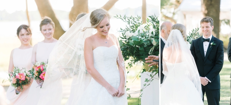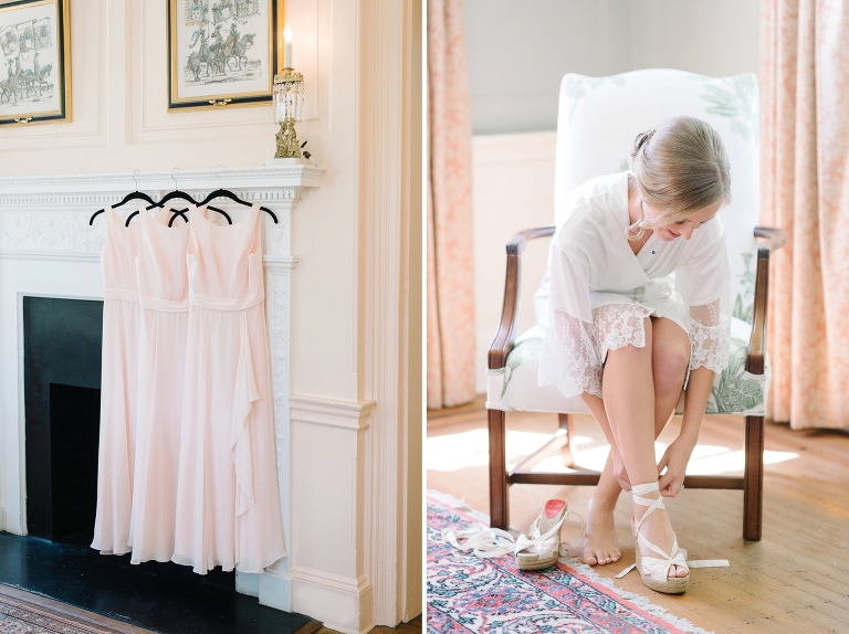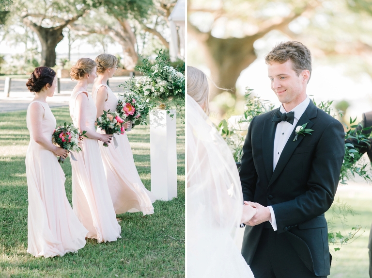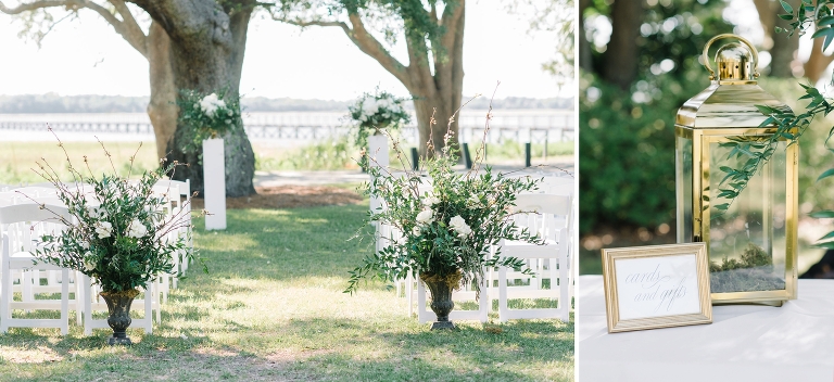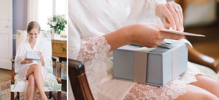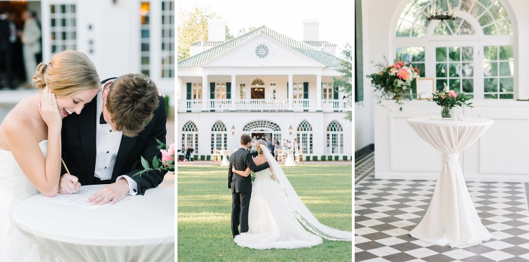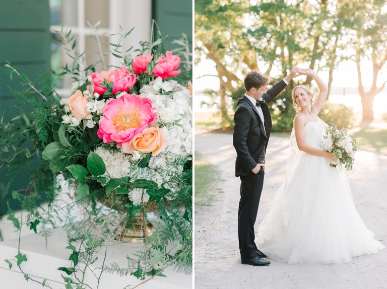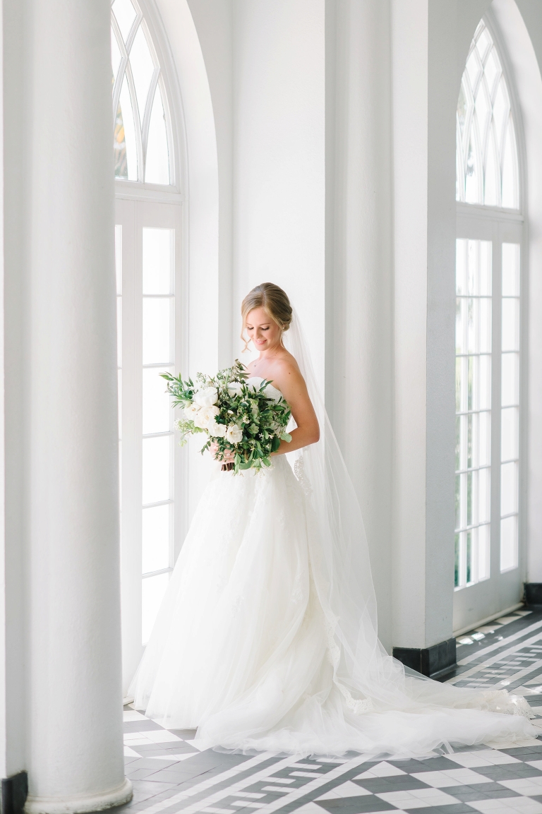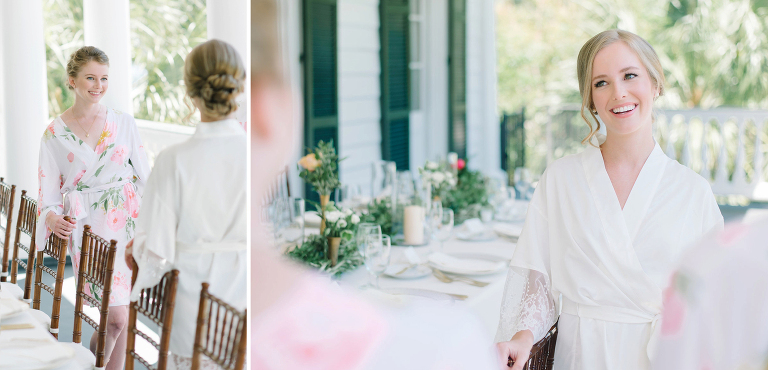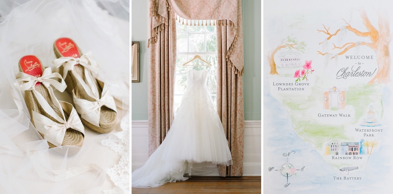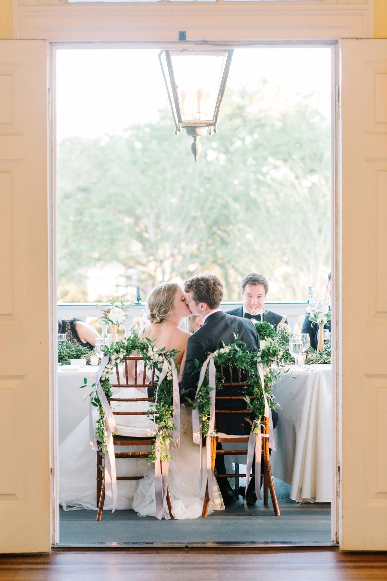 Abby and Will met in French class the spring semester of their junior year at Emory University in Atlanta, GA and by the second day of class, Will was already choosing the seat next to Abby.  It didn’t take long before he started to carry her books and walk her to her next class… if you ask him though, he’ll say he tried for months and months to ask her out, but sweet little Abby was completely oblivious!  Good thing she finally caught on and gave Will a chance to win over her heart because look at them now!! They’re living in Chapel Hill and have the most adorable Golden Retriever fur baby named Lilly, which you’ll see when you scroll through their gorgeous wedding photos!  Their wedding was one of our absolute favorites of all time at Lowndes Grove for so many reasons!  For one, Abby is an incredible oil and watercolor painter and she hand painted her entire invitation suite along with some other gorgeous wedding stationery for their big day!  (If you’re looking for someone to paint your wedding venue, your new house, or even your furbabies, EMAIL HER!  She’s incredible and has already painted out little “Home On Hickory” and gorgeous portraits of Cash and Boone for us! We’re obsessed and love that we’ll have a little piece of her talent in our own home!)  Back to the wedding though, our other favorite thing about their wedding day was the fact that they used the rooms in the historic house and the upstairs porch for their seated dinner!  The head table was out on the front porch and Abby + Will’s friends toasted them for hours, while the sun set and the stars came out!  It was pretty magical and it felt as if their wedding was held at one of Abby + Will’s rich Southern grandparent’s home on the water!!  Swoon!  We’re pretty sure with how gorgeous the gals of Mac & B Events decorated it, how delicious the food was, and how in love Abby + Will were, their guests will be talking about their wedding for years to come!!  So, without further adieu… we bring you Abby + Will’s gorgeous Lowndes Grove wedding in Charleston, SC!