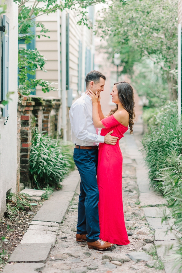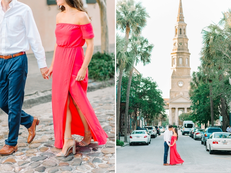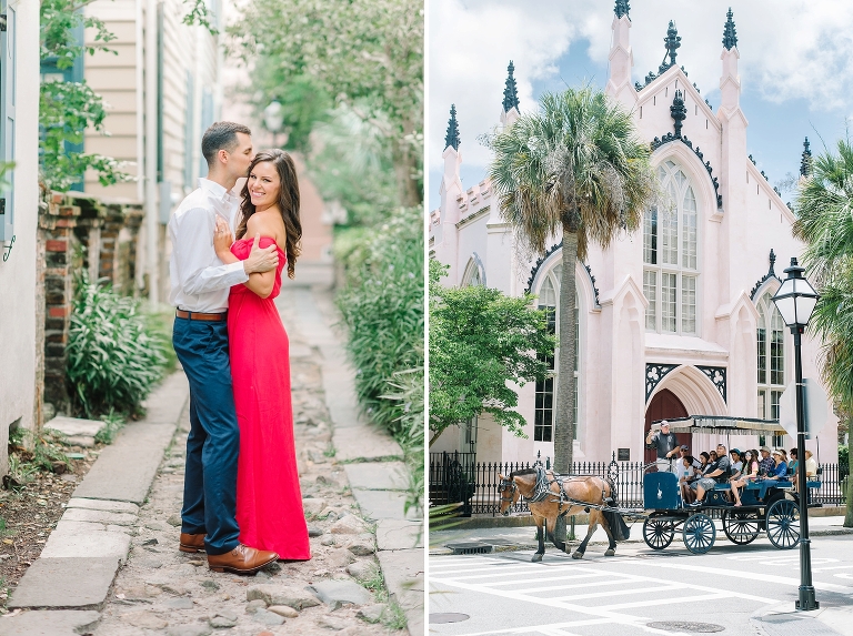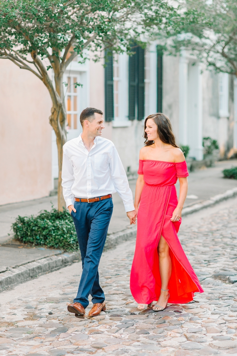 When we met up with Katelyn & James in downtown Charleston for their engagement session, we never thought we would leave feeling more in love with each other! It’s funny how hanging out with couples who are in the honeymoon phase of love can be addicting!! These two have a love that is literally inspiring! They’re SSSSOOOOO cute together and you can tell, by the way they look at each other, that there’s a mutual respect and adoration for one another! Love seeing that!!! And can we talk about how much we LOVE when the guys come 100% down to take engagement photos!! James was literally giddy (He’ll probably kill me for saying that), but it TOTALLY made our day!! Being authentic in your engagement photos is key! You’ll have these for the rest of your lives, and likely even longer, so allowing yourself to embrace the awkwardness of being in front of 2 cameras will be completely worth it when you’re 90 years old and wrinkly, looking back at your younger selves through these photos of you and your favorite person on the planet! James and Katelyn, thank you for being so AMAZING!!! We can’t wait to spend your wedding day along side you guys in March!!