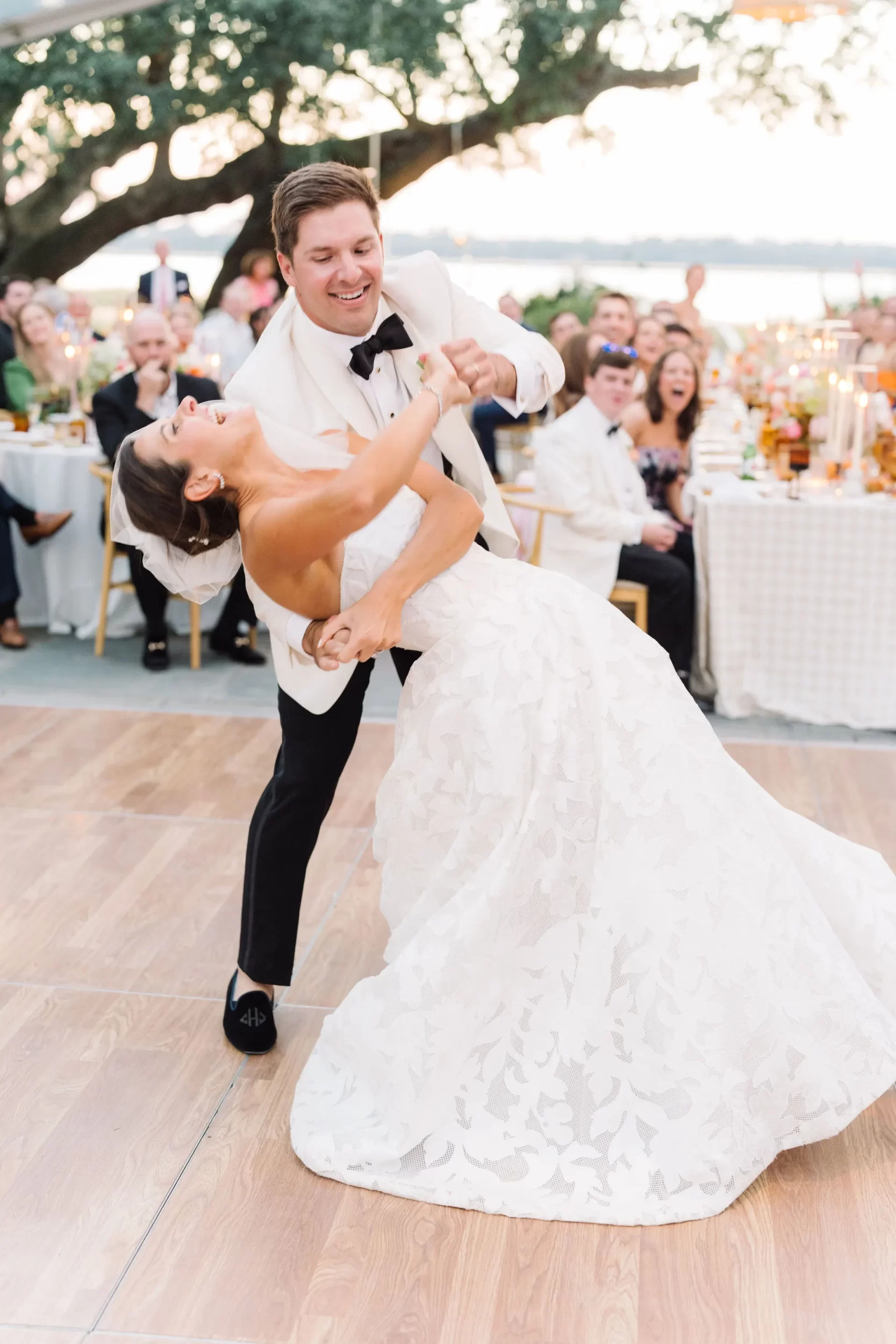 Their cocktail hour on the Lowndes Grove lawn overlooking the river, framed by Spanish moss and sunshine was INCREDIBLE!! We love how Lowndes Grove creates this seamless blend of elegance and laid-back Lowcountry style. It’s honestly one of the best Charleston wedding venues, and this day reminded us why!!