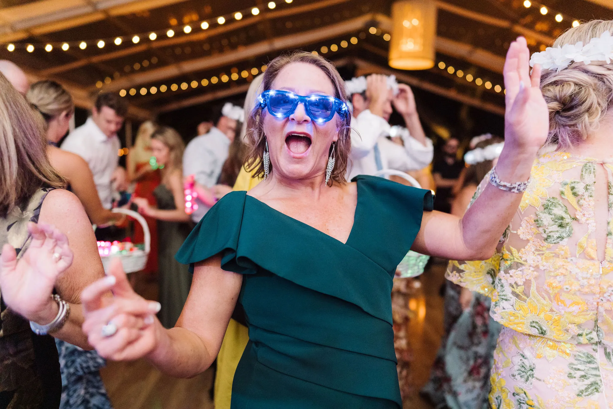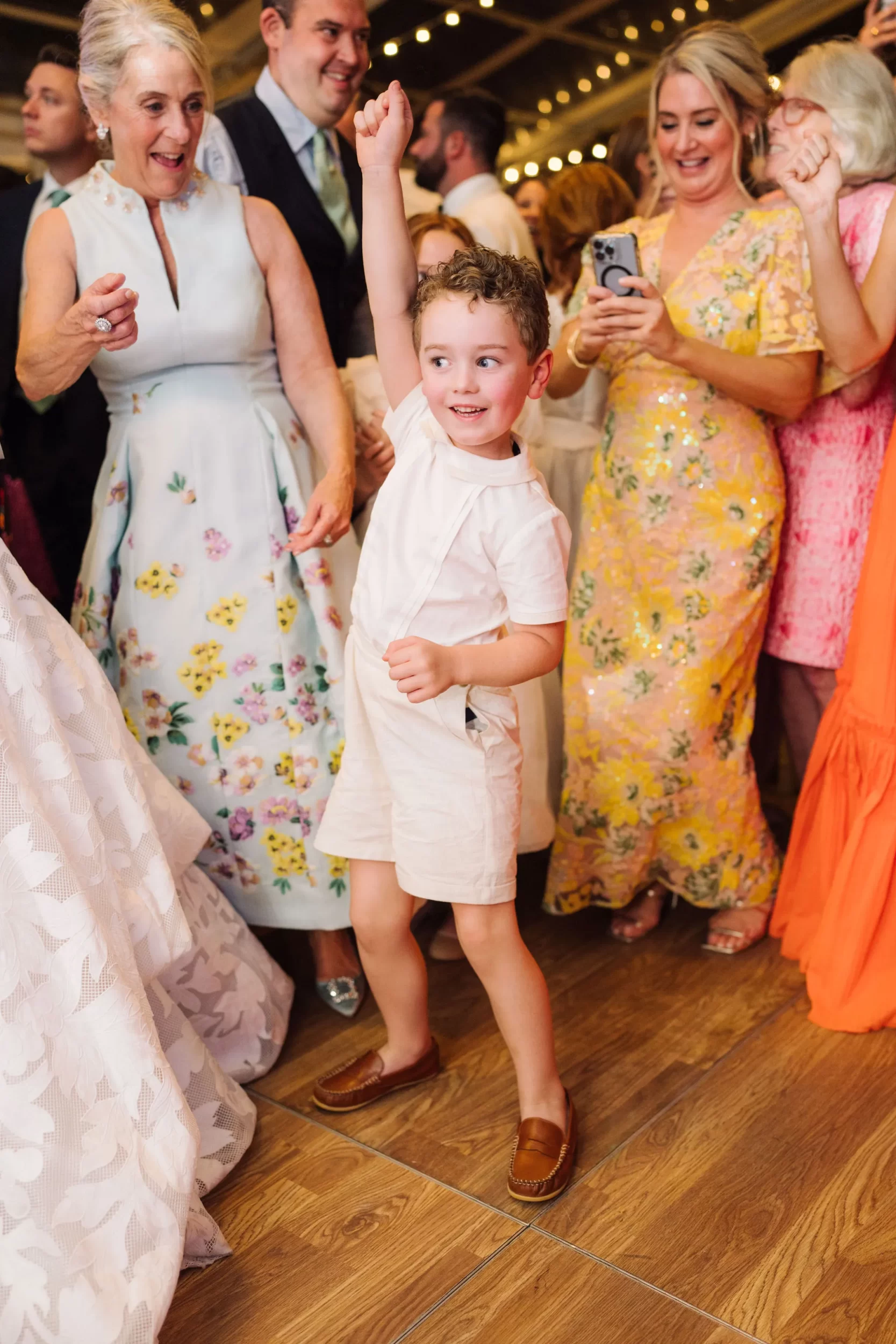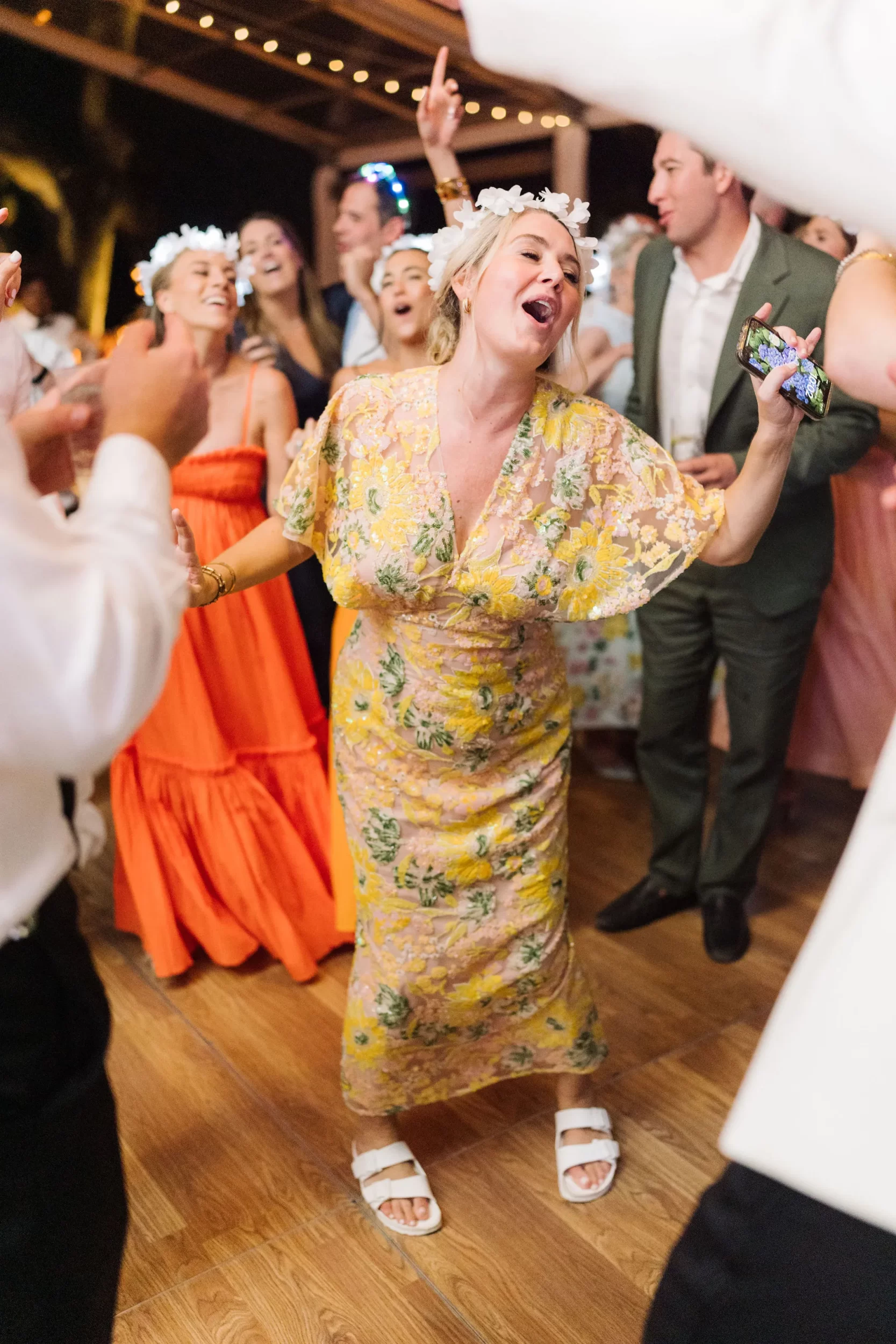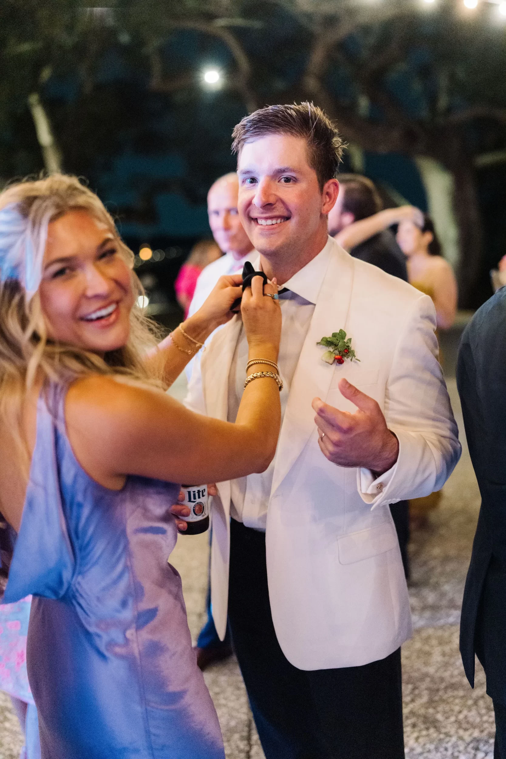 The reception was bursting with color and energy!! … A perfect reflection of Maggie & Evan! Long tables were draped with elegant linens, bold florals, and glowing candlelight. Guests danced under the open sky, laughed over champagne toasts, and soaked up every second of the night!