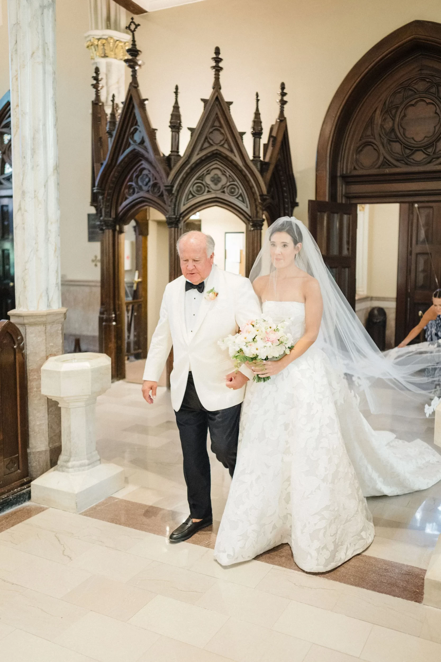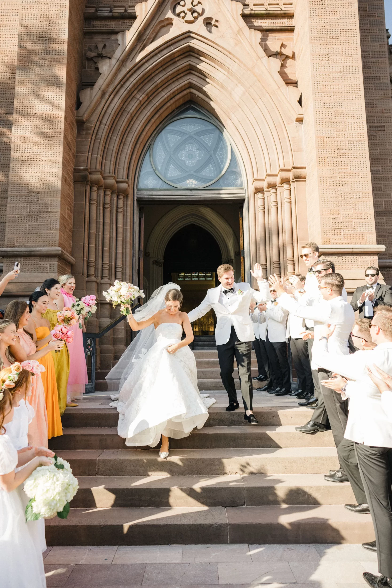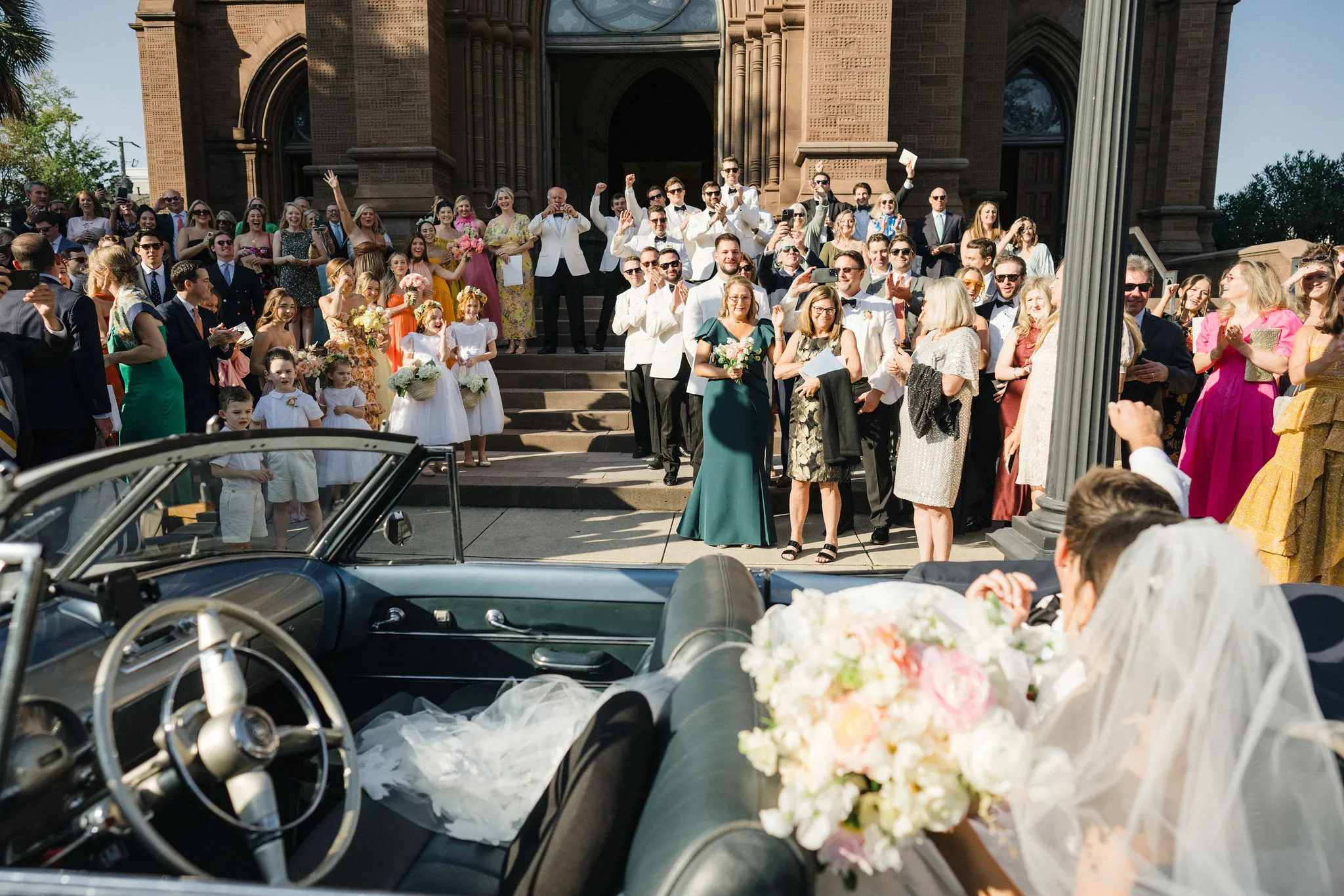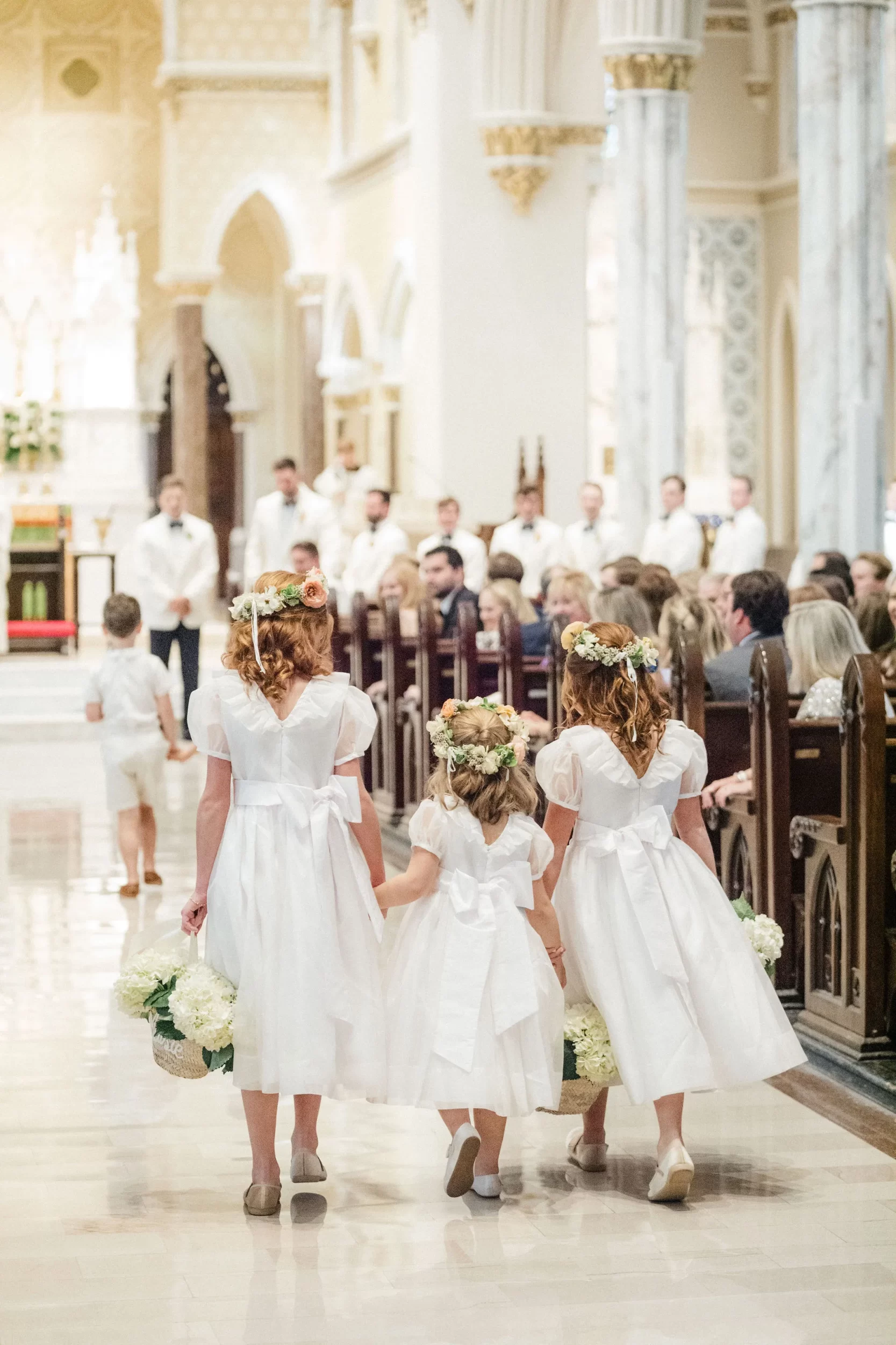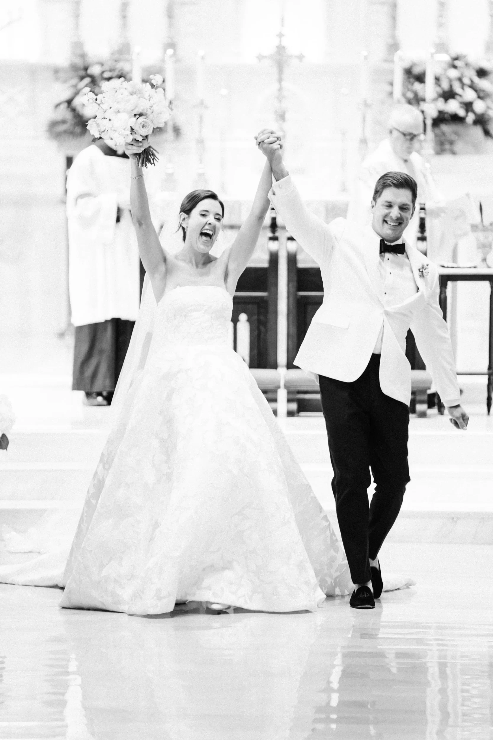 The ceremony took place in one of our absolutely favorite churches in downtown Charleston – actually, who are we kidding – it’s our favorite!! St John The Baptist Cathedral is a place where you walk in and are immediately in awe!! And every detail felt intentional; from the music to the florals to the heartfelt vows that had everyone teary-eyed.