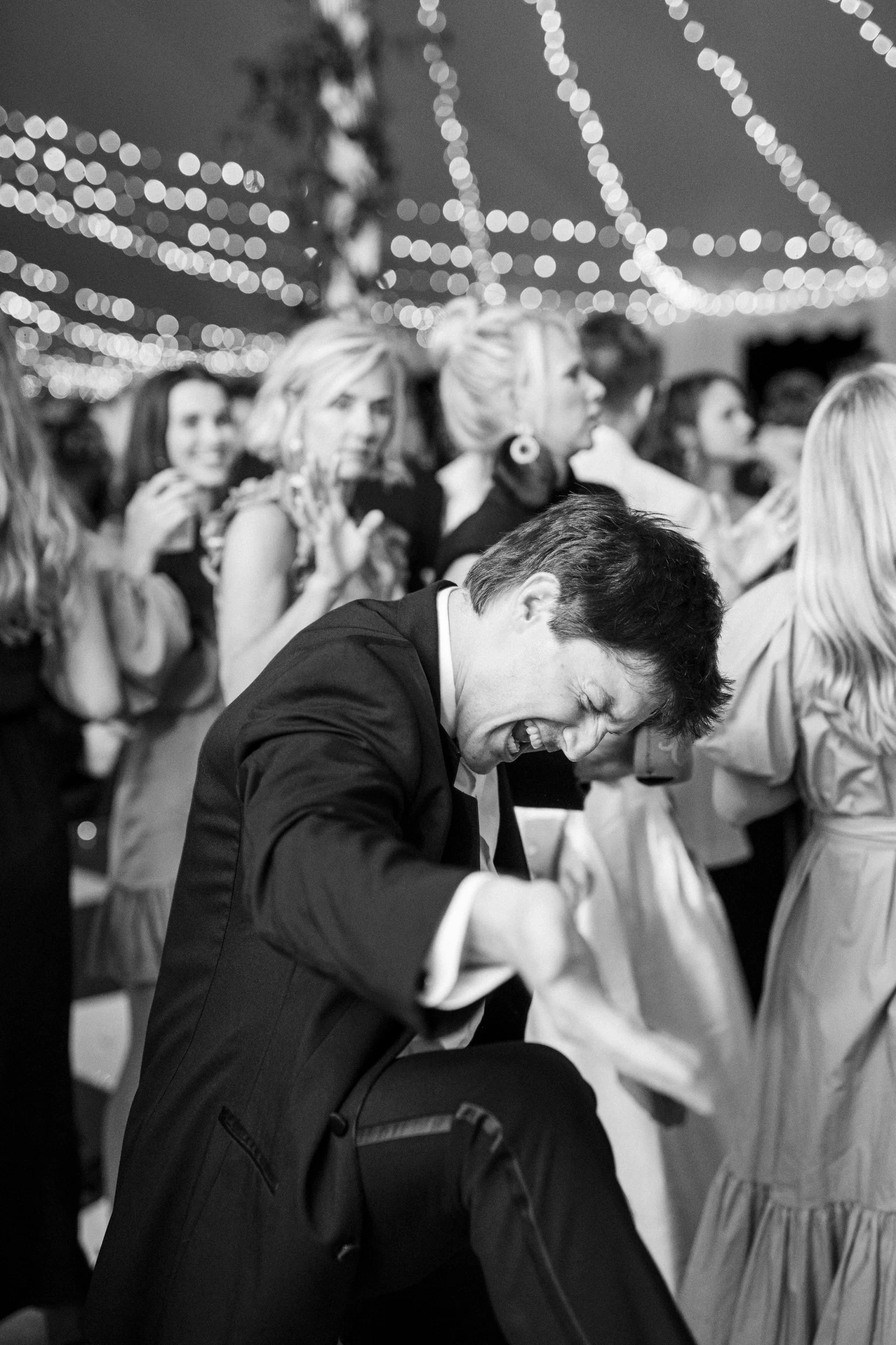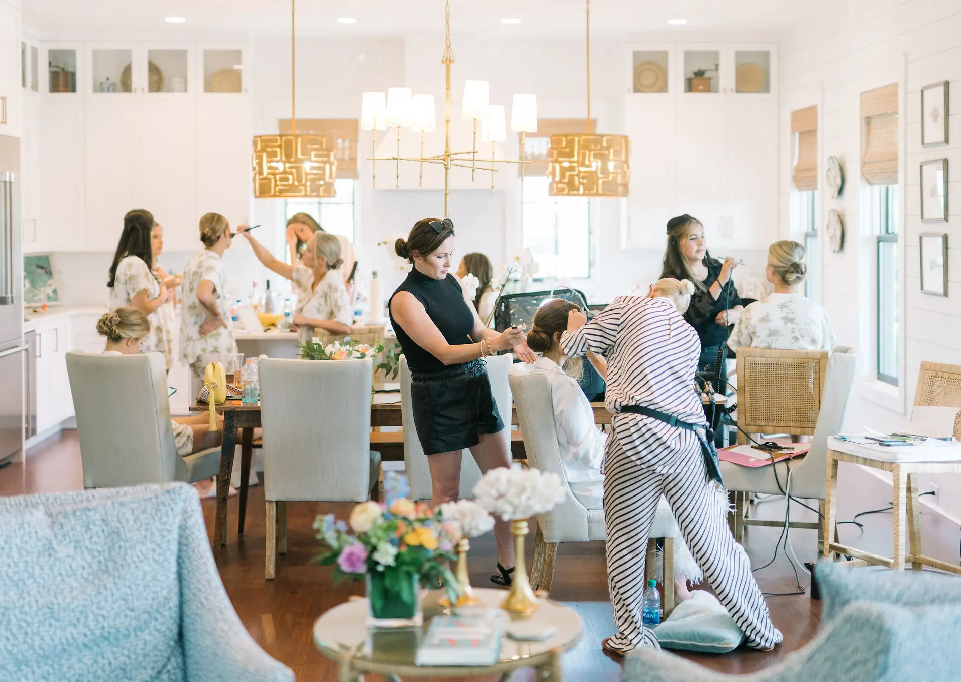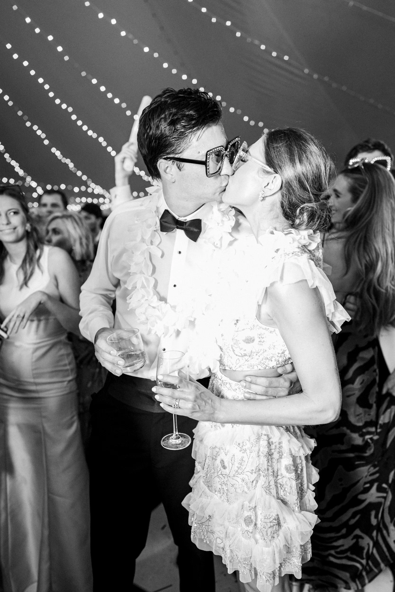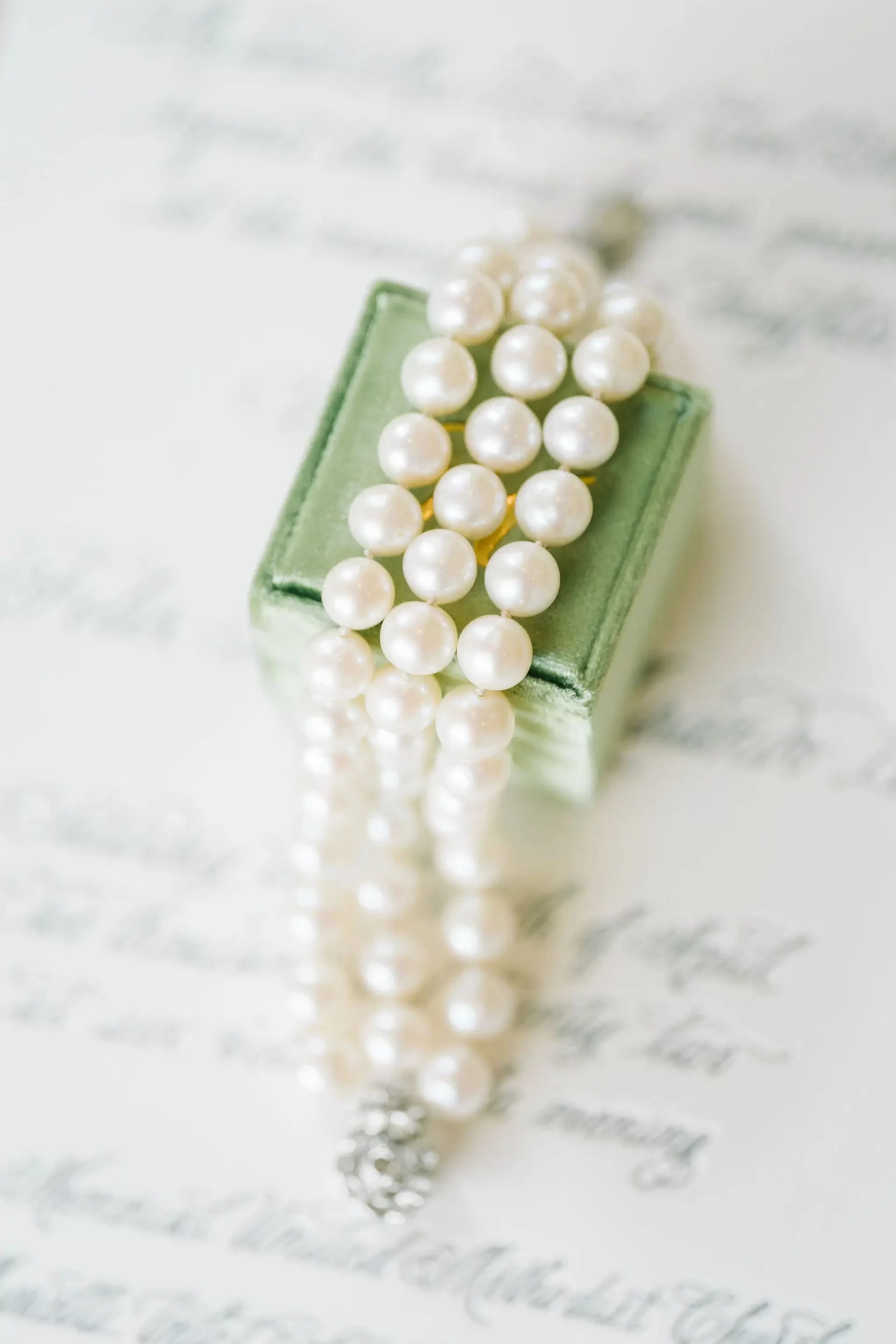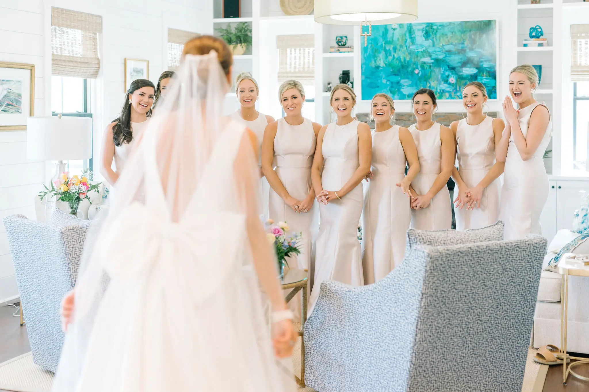 The bridesmaids wore sleek champagne gowns by Alfred Sung, accessorized with pearls from Sidebar Design, and the sweetest pajamas from Piyama during the getting ready moments (we still can’t get over that porch champagne pop!).