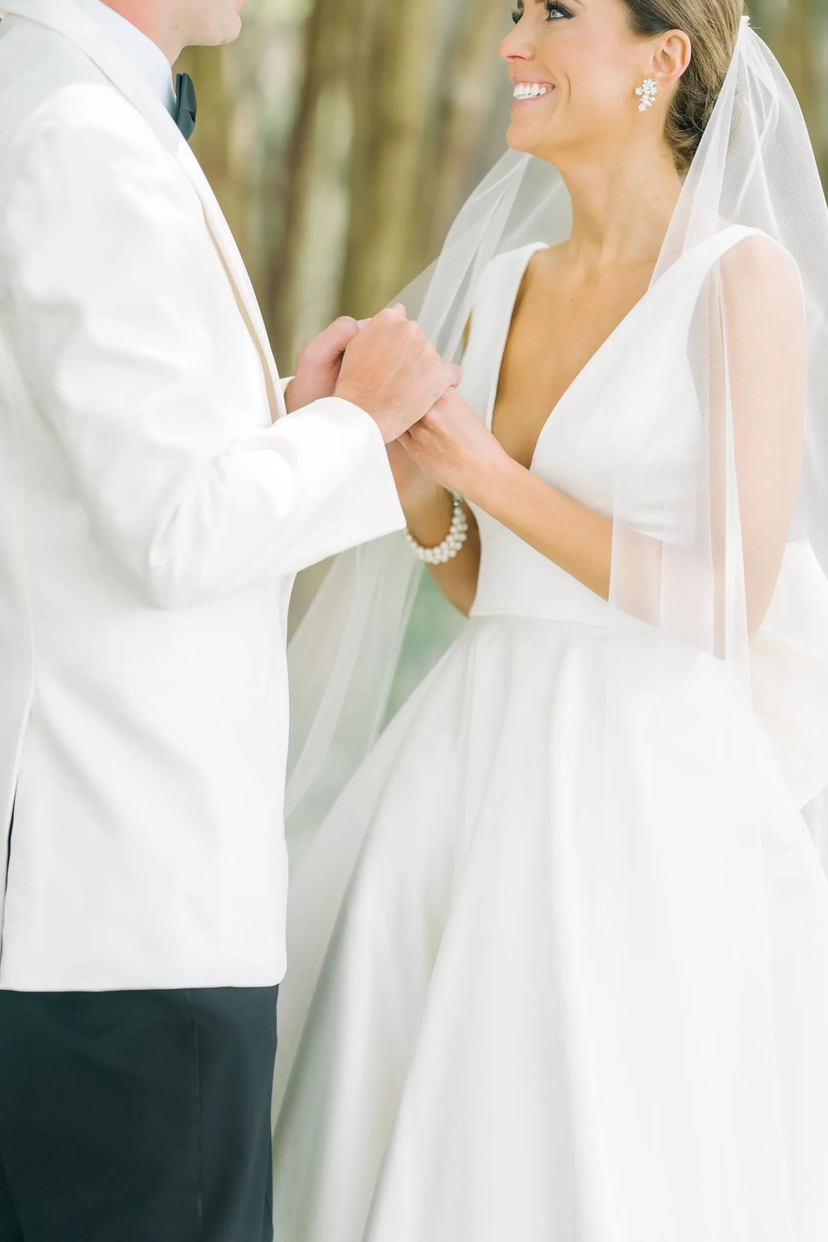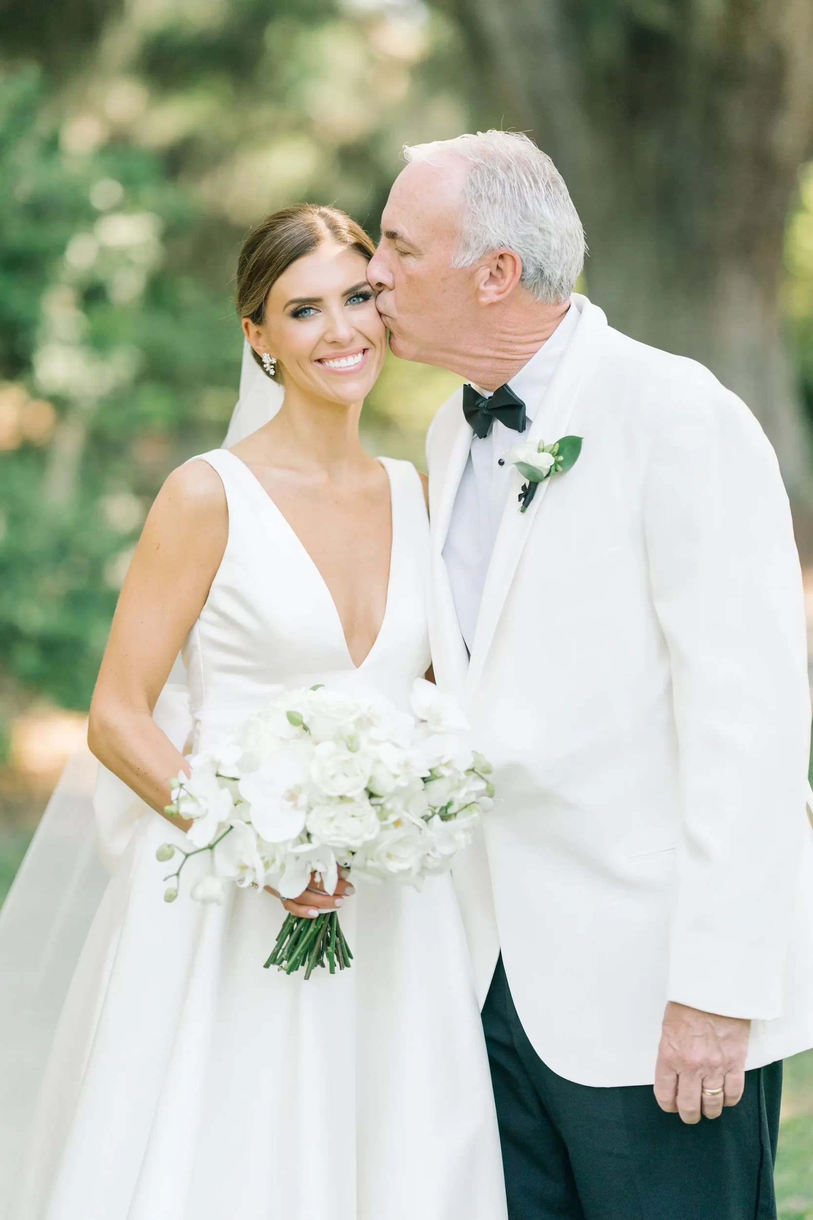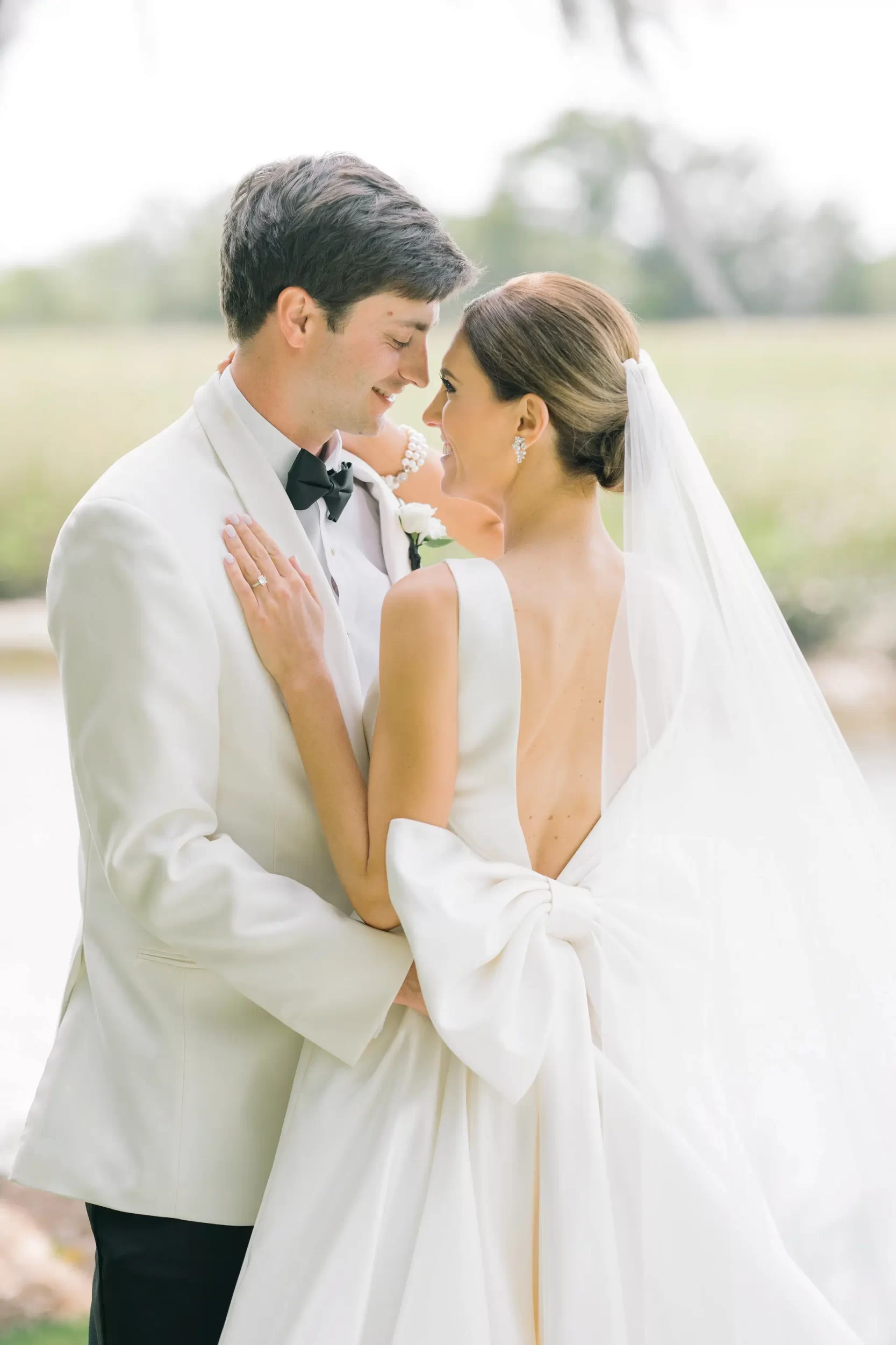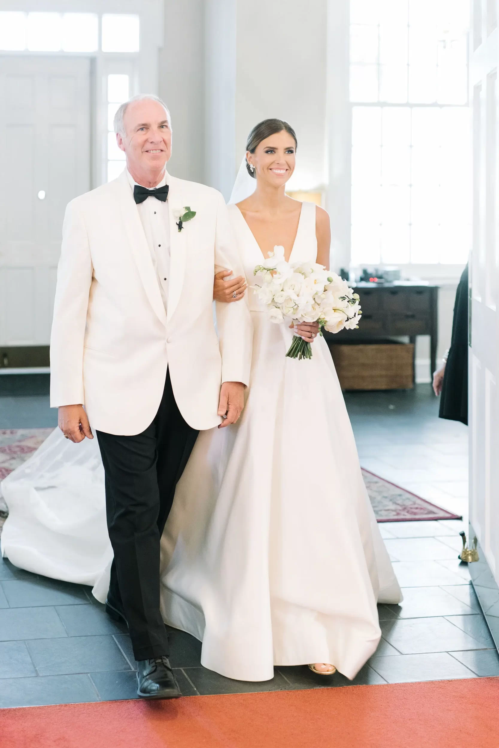 Anna Grace’s dress from Hayden Olivia Bridal (designed by Rita Vinieris) was a total showstopper, complete with a dramatic back bow that we are still swooning over! Her hair and makeup, by Dannon Collard and Lashes & Lace, were timeless and flawless — perfectly complementing her gorgeous bridal glow. Her earrings sparkled subtly while her Alexander Birman heels added a sophisticated touch.