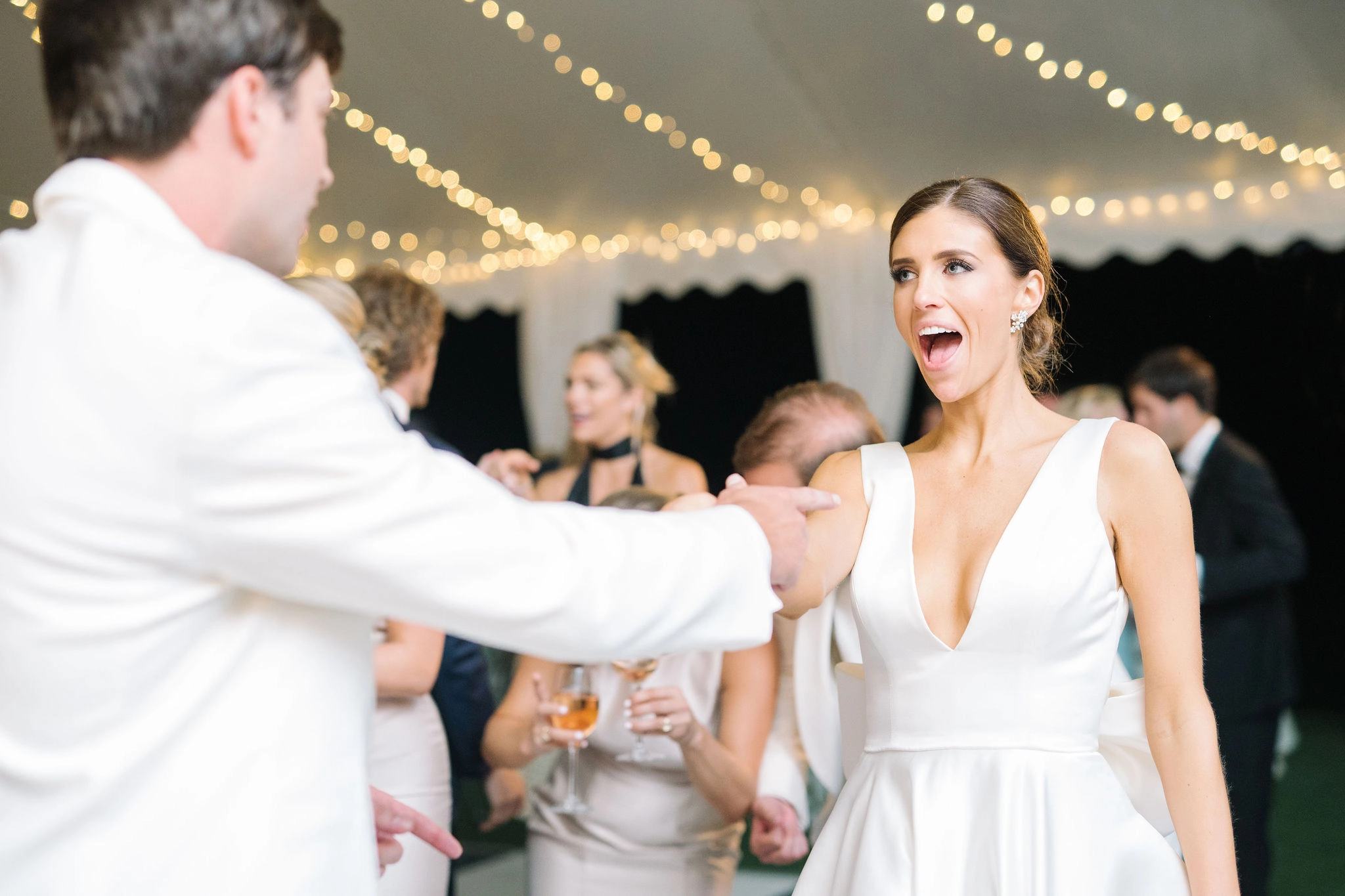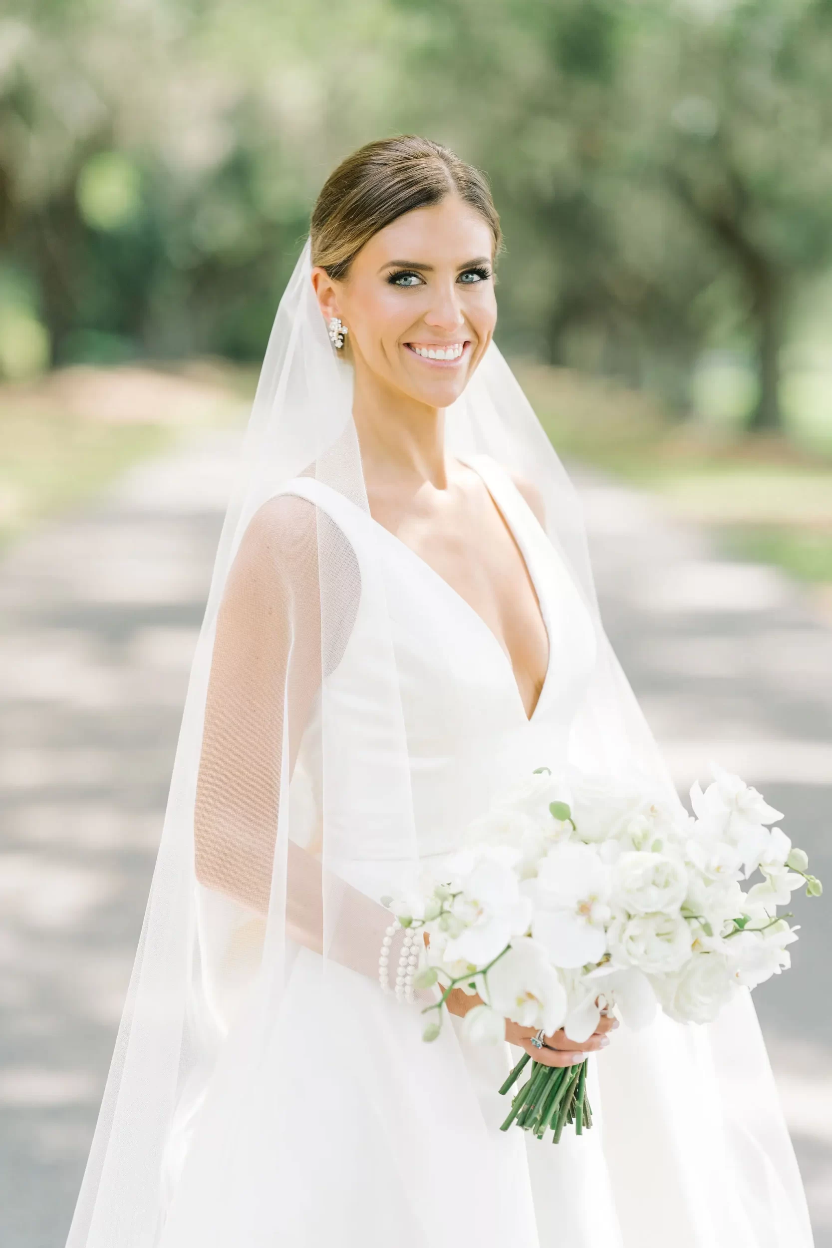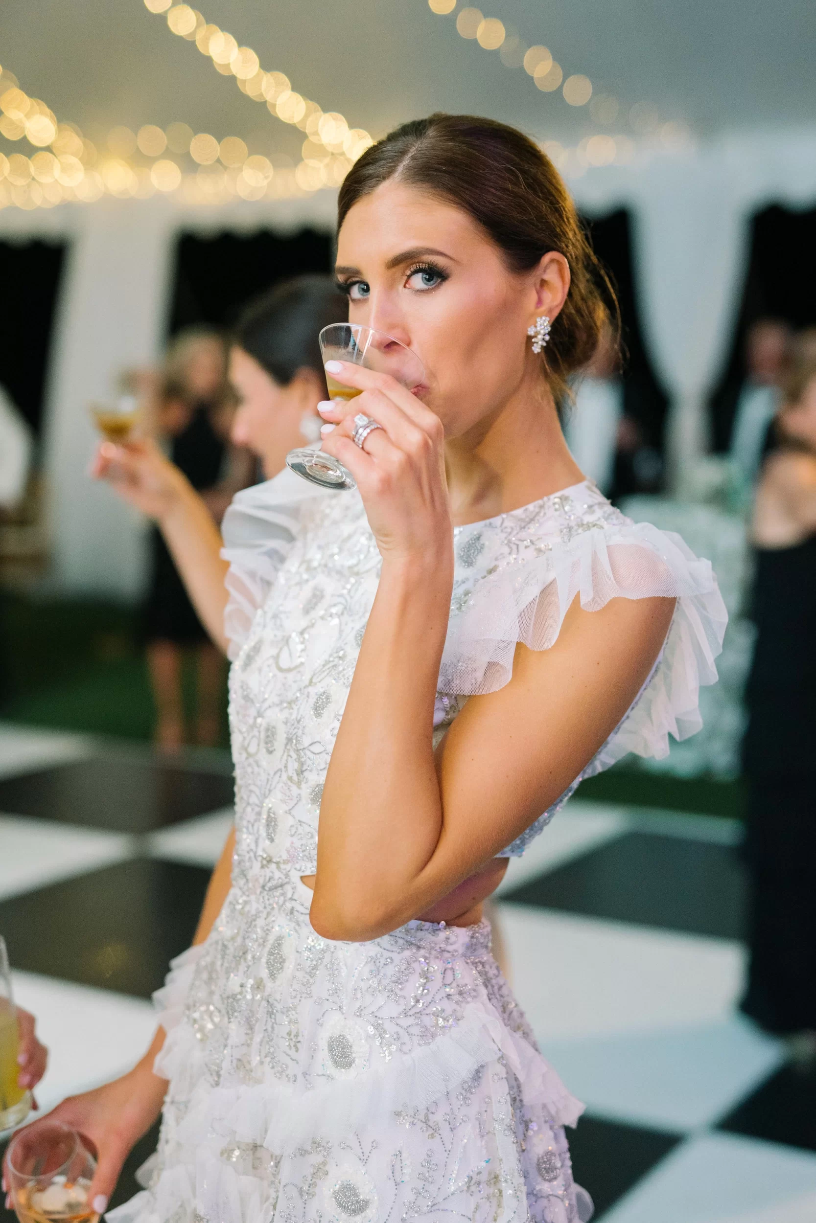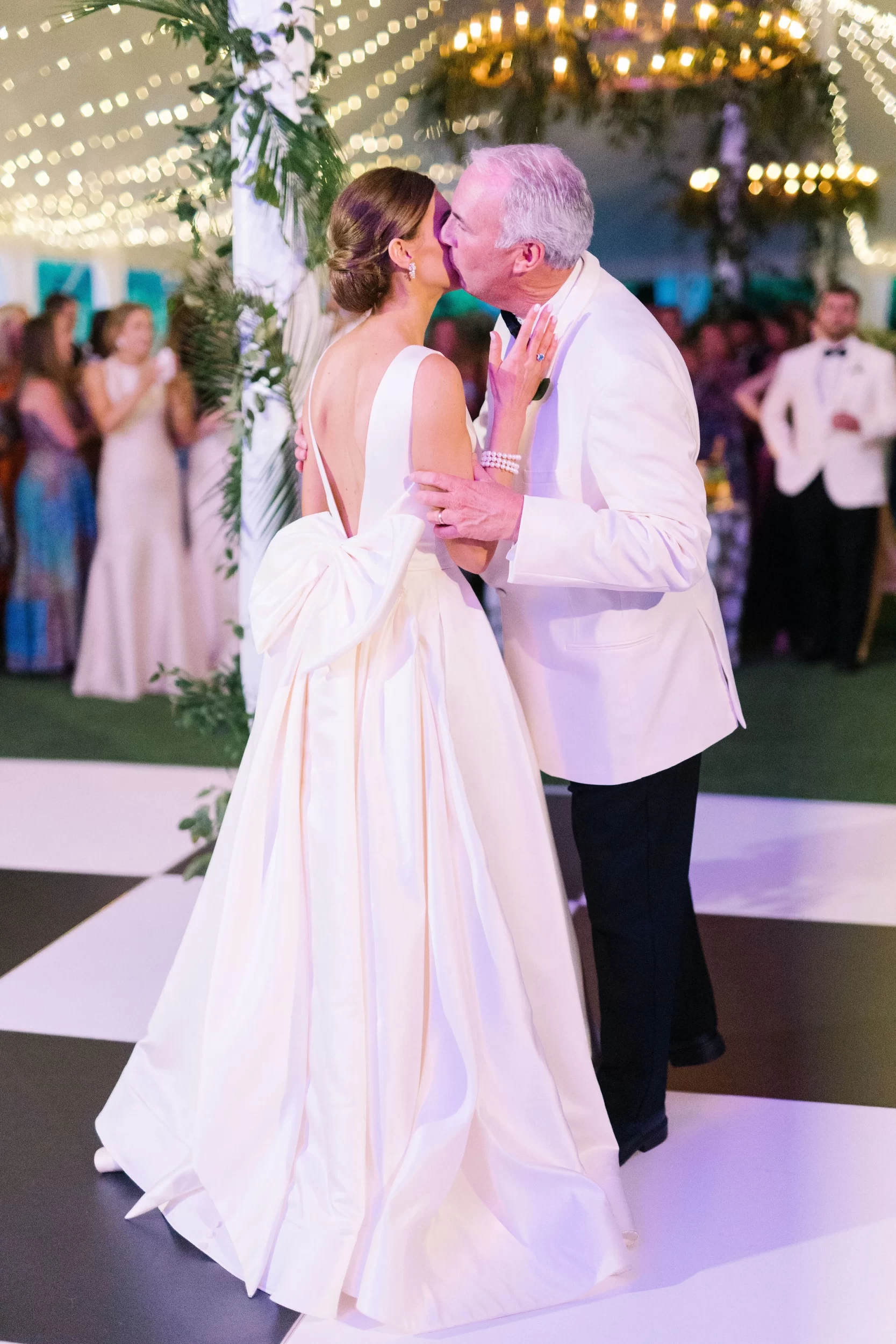 Anna Grace’s dress from Hayden Olivia Bridal (designed by Rita Vinieris) was a total showstopper, complete with a dramatic back bow that we are still swooning over! Her hair and makeup, by Dannon Collard and Lashes & Lace, were timeless and flawless — perfectly complementing her gorgeous bridal glow. Her earrings sparkled subtly while her Alexander Birman heels added a sophisticated touch.