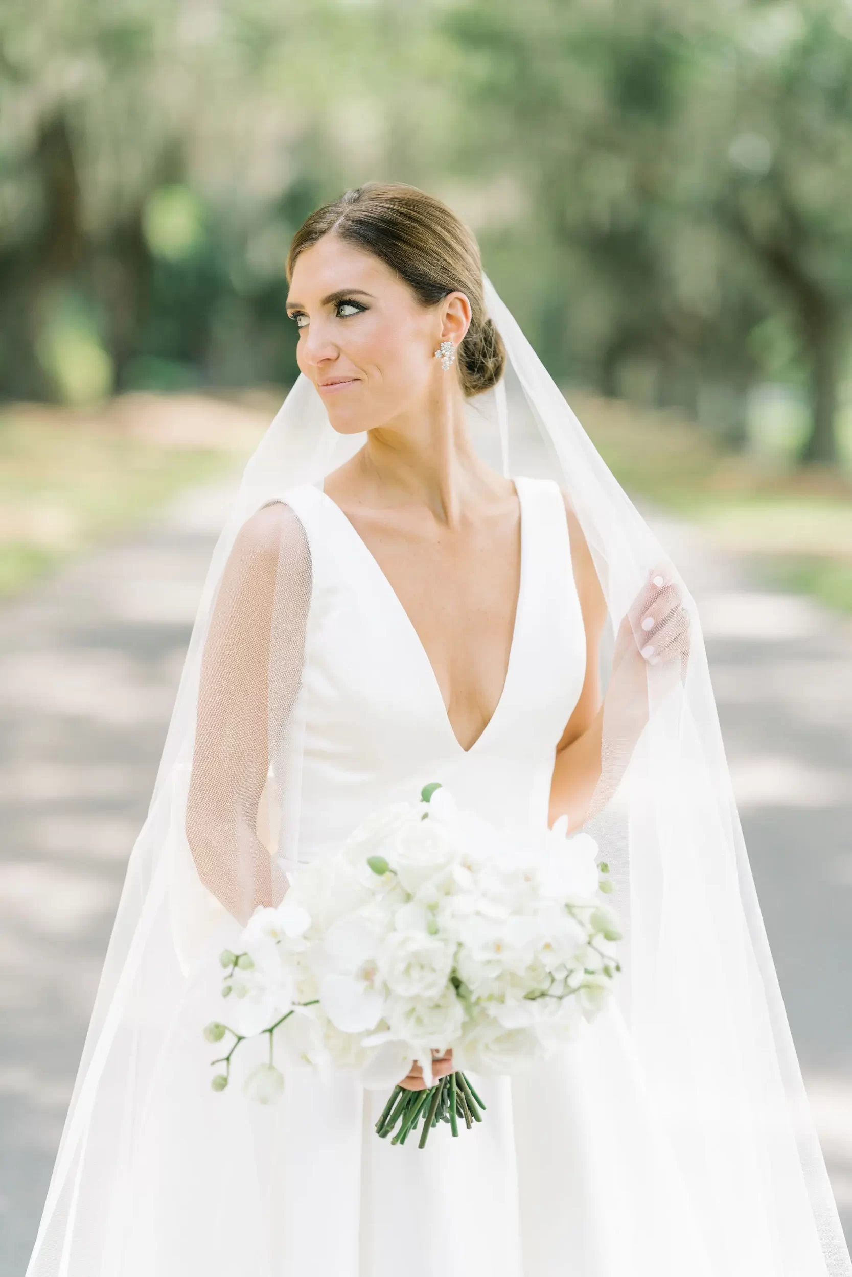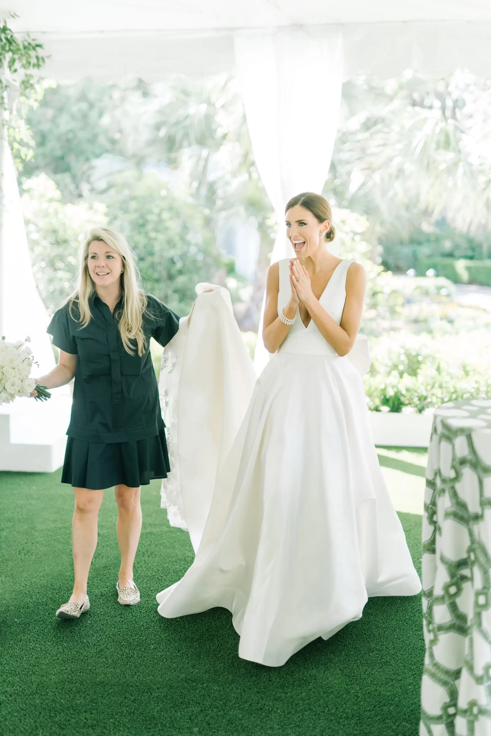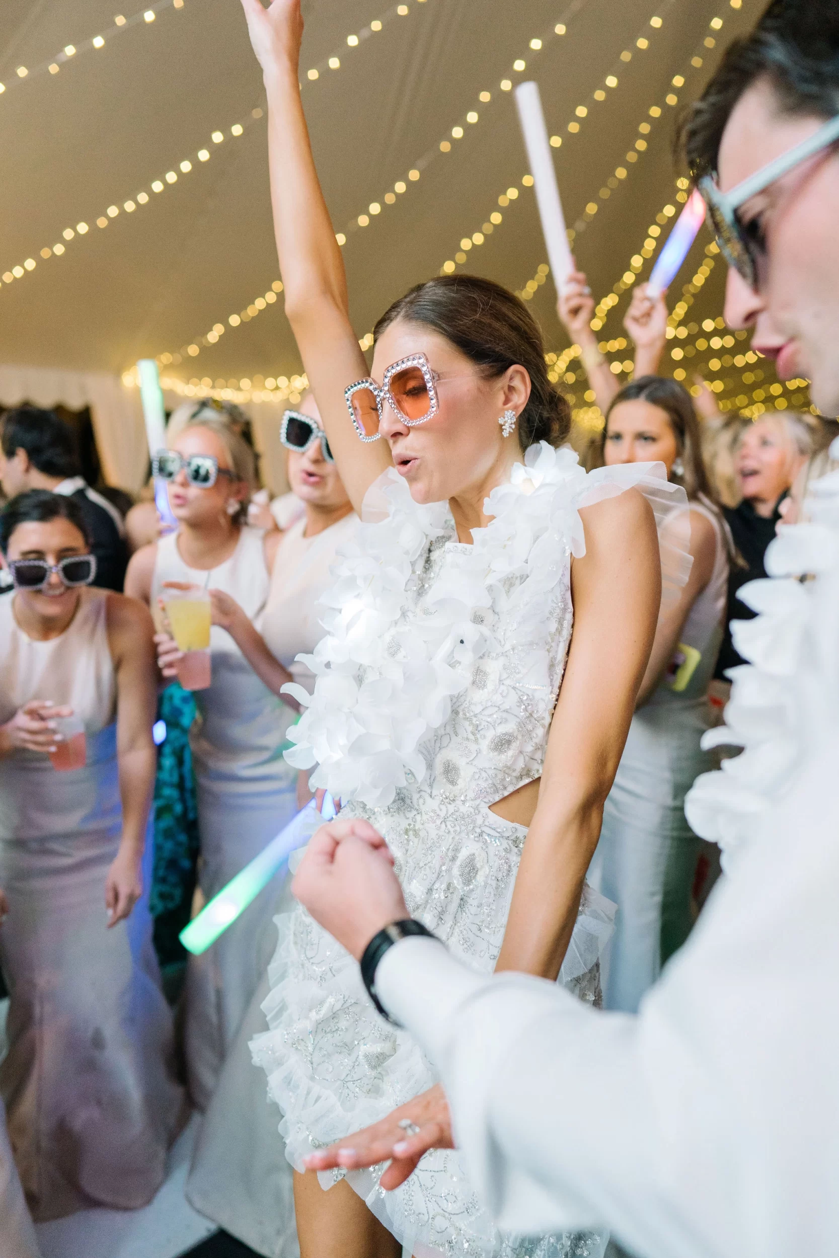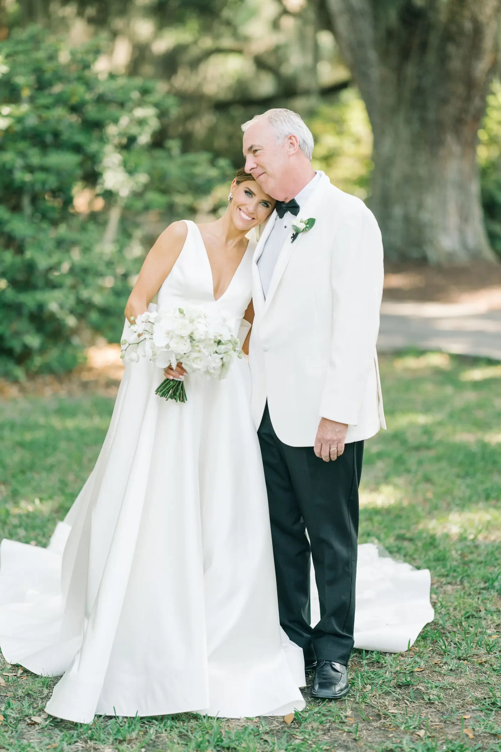 Anna Grace’s dress from Hayden Olivia Bridal (designed by Rita Vinieris) was a total showstopper, complete with a dramatic back bow that we are still swooning over! Her hair and makeup, by Dannon Collard and Lashes & Lace, were timeless and flawless — perfectly complementing her gorgeous bridal glow. Her earrings sparkled subtly while her Alexander Birman heels added a sophisticated touch.