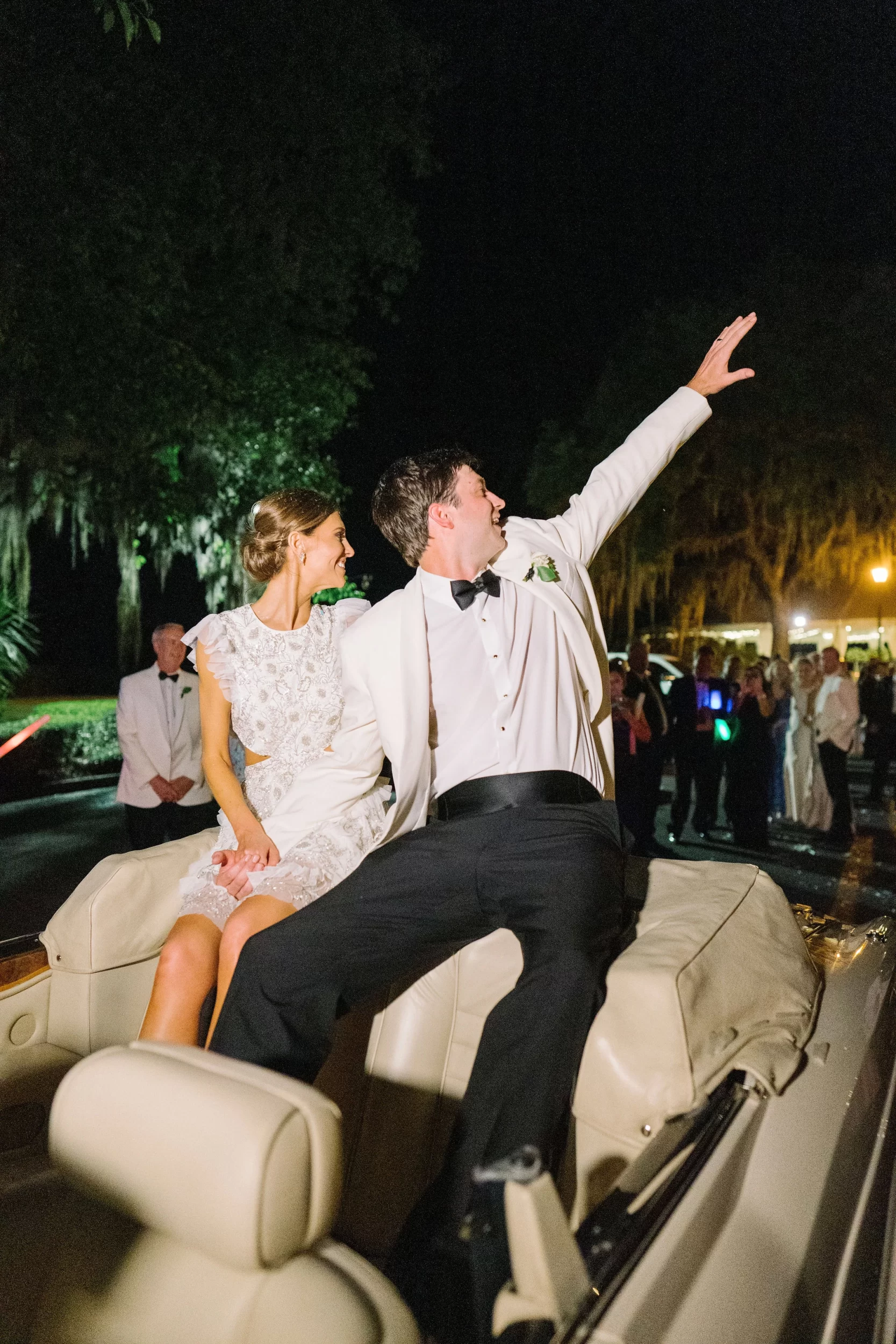 The night wrapped with the cutest rose petal toss and getaway in the prettiest classic convertible from Whipdash! The perfect send-off to their new life together!