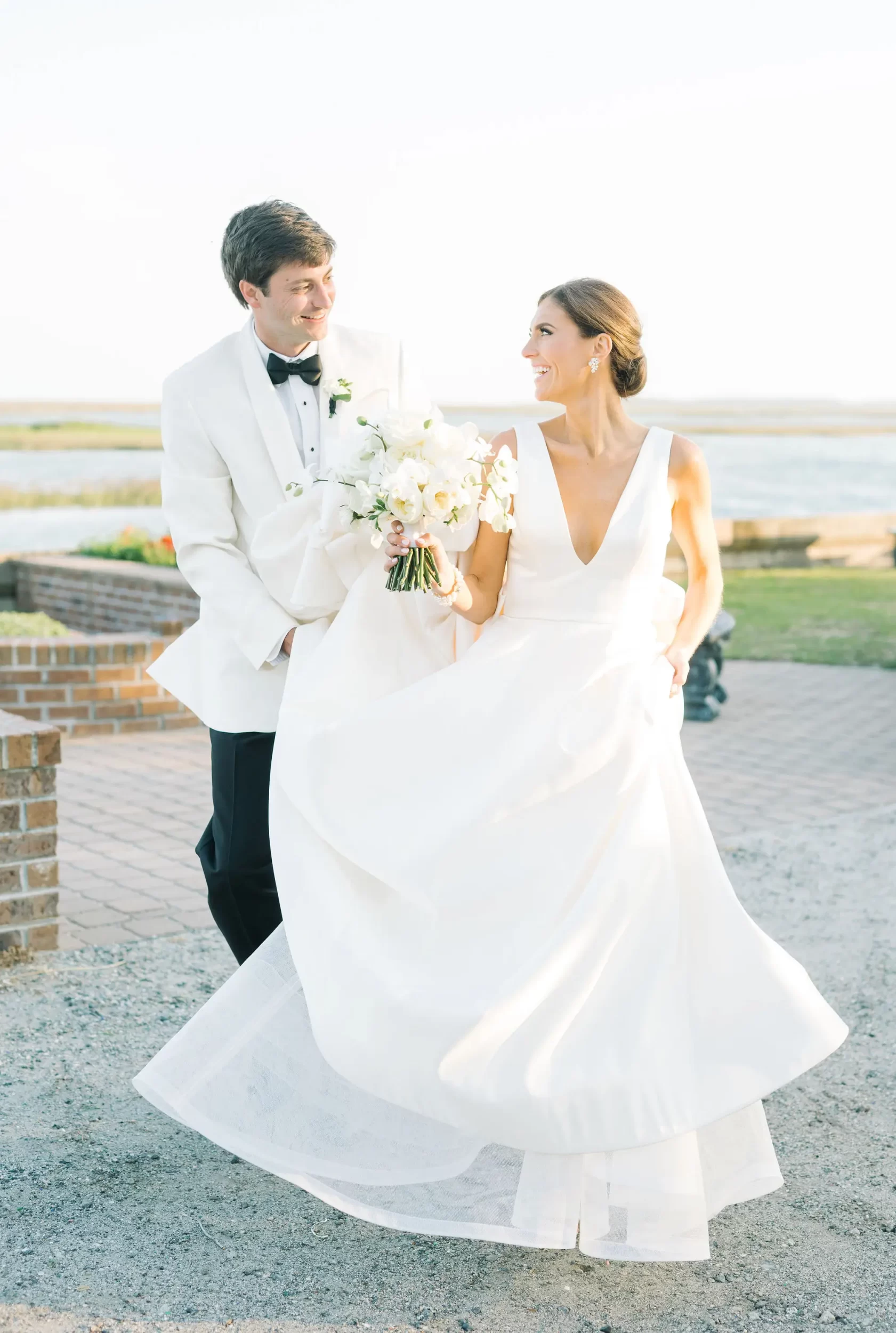 Their wedding ceremony was held at Belin Memorial United Methodist Church, a beautiful waterfront chapel that brought the perfect mix of sacred tradition and coastal charm. From there, guests headed to the moss-draped oaks and serene scenery of Caledonia Golf & Fish Club in Pawleys Island for an unforgettable reception under the stars!!