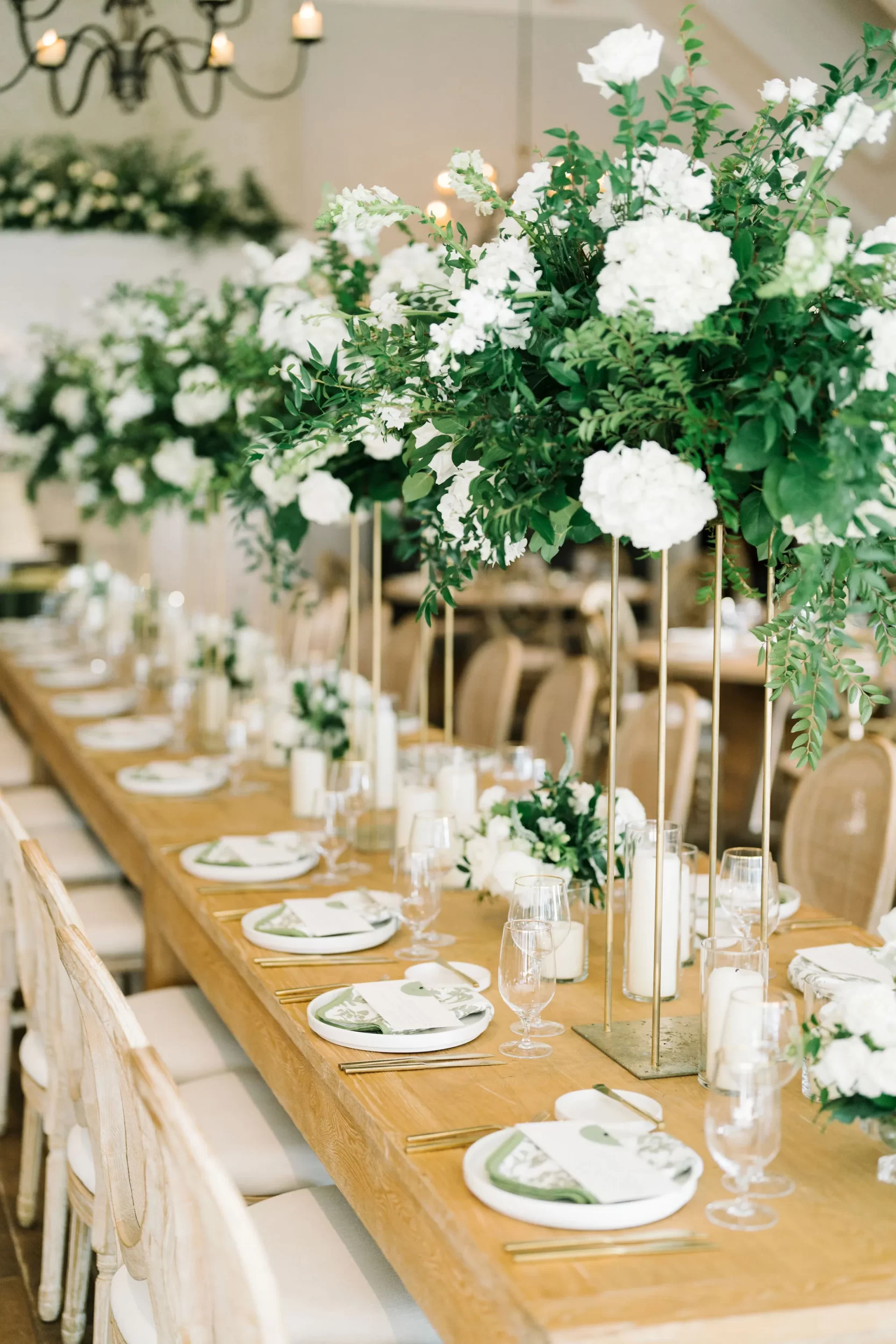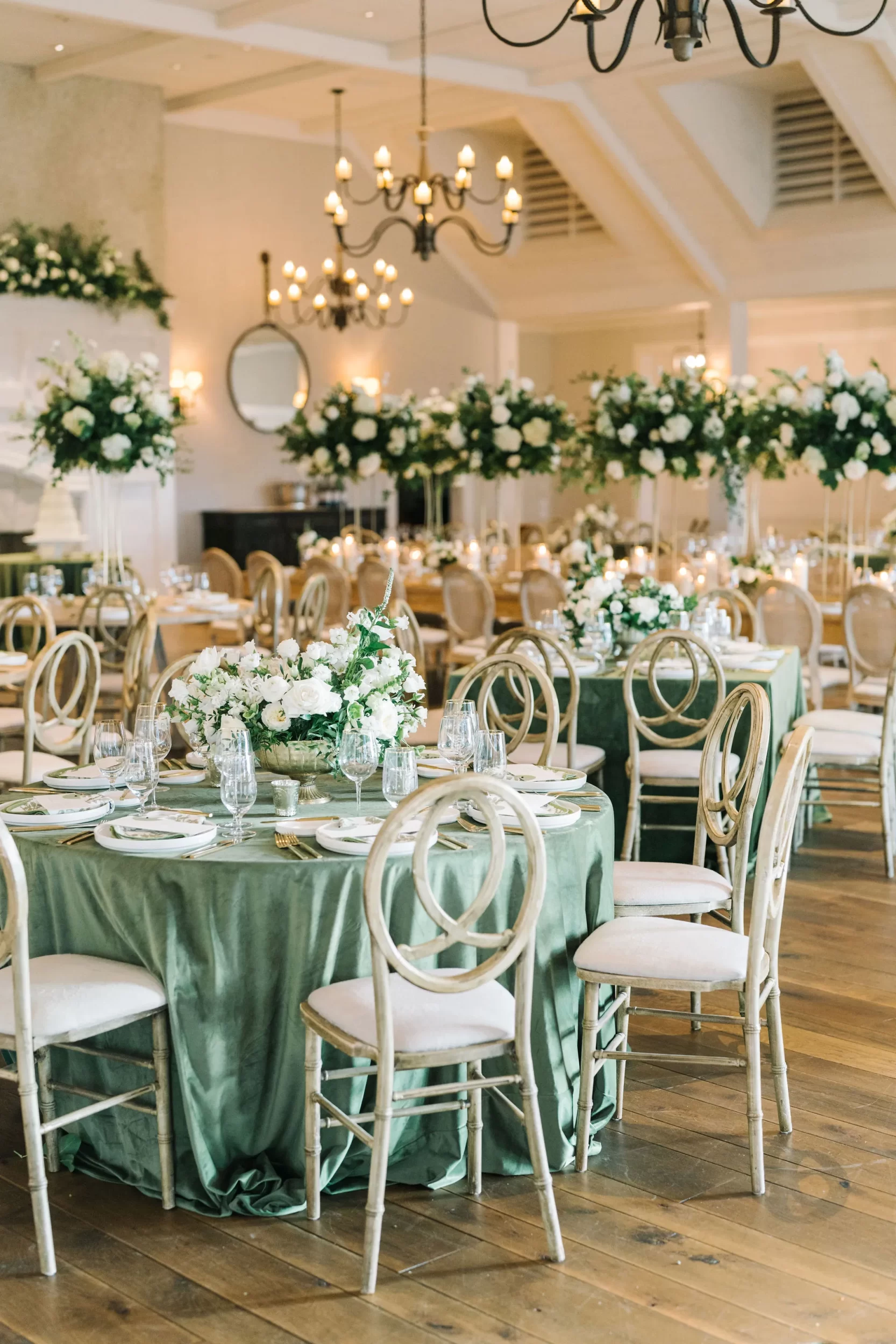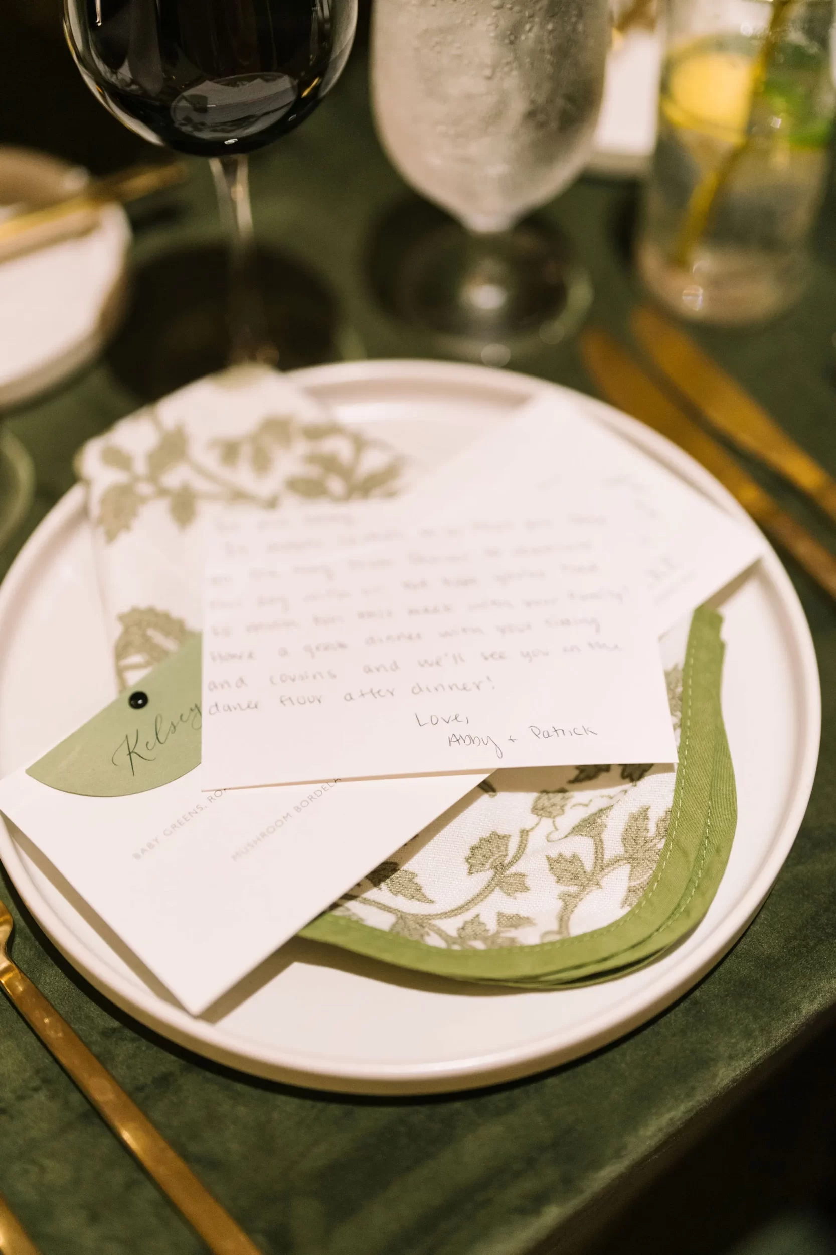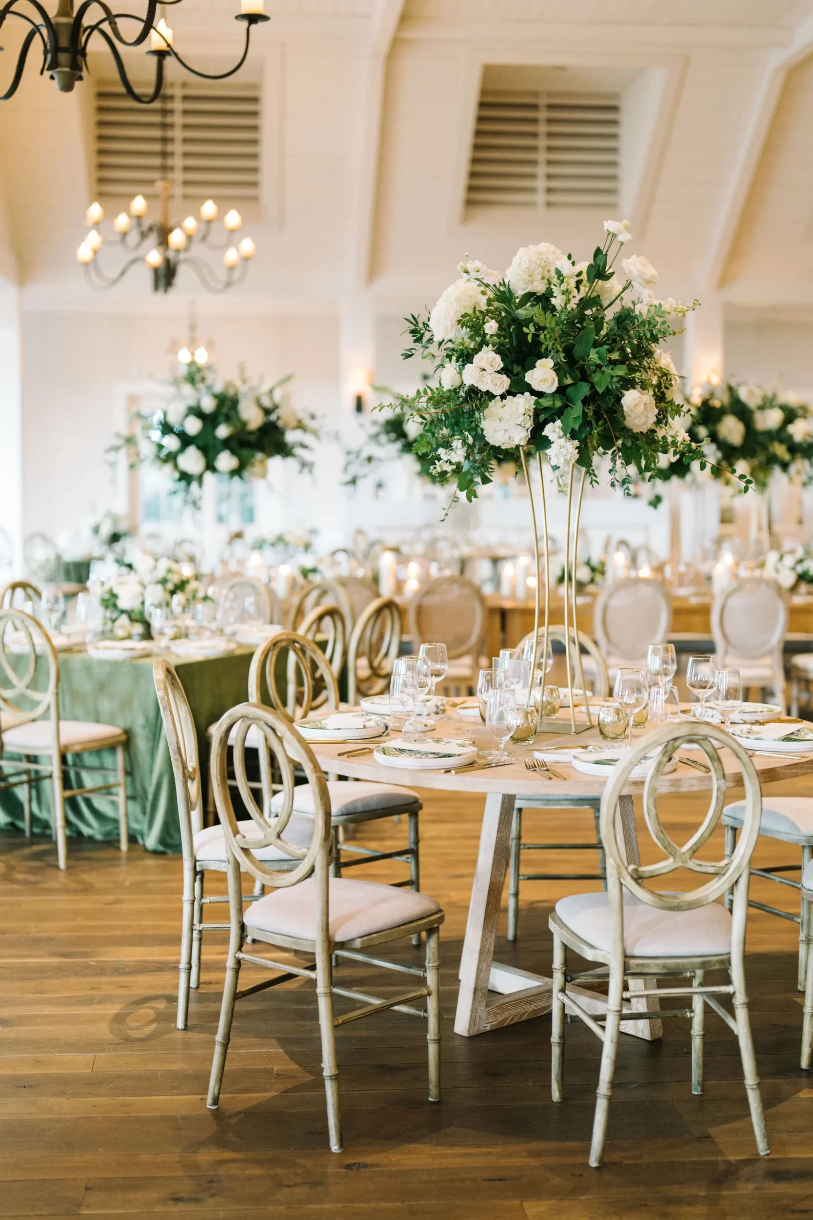 The entire day was beautifully planned and designed by the team at Pure Luxe Bride, who brought Abby and Patrick’s vision of a green, white, and gold wedding to life with sophisticated touches at every turn! From the Nuage and Stradley Davidson linens to the Studio R calligraphy and custom invitation suite, no detail was left undone.