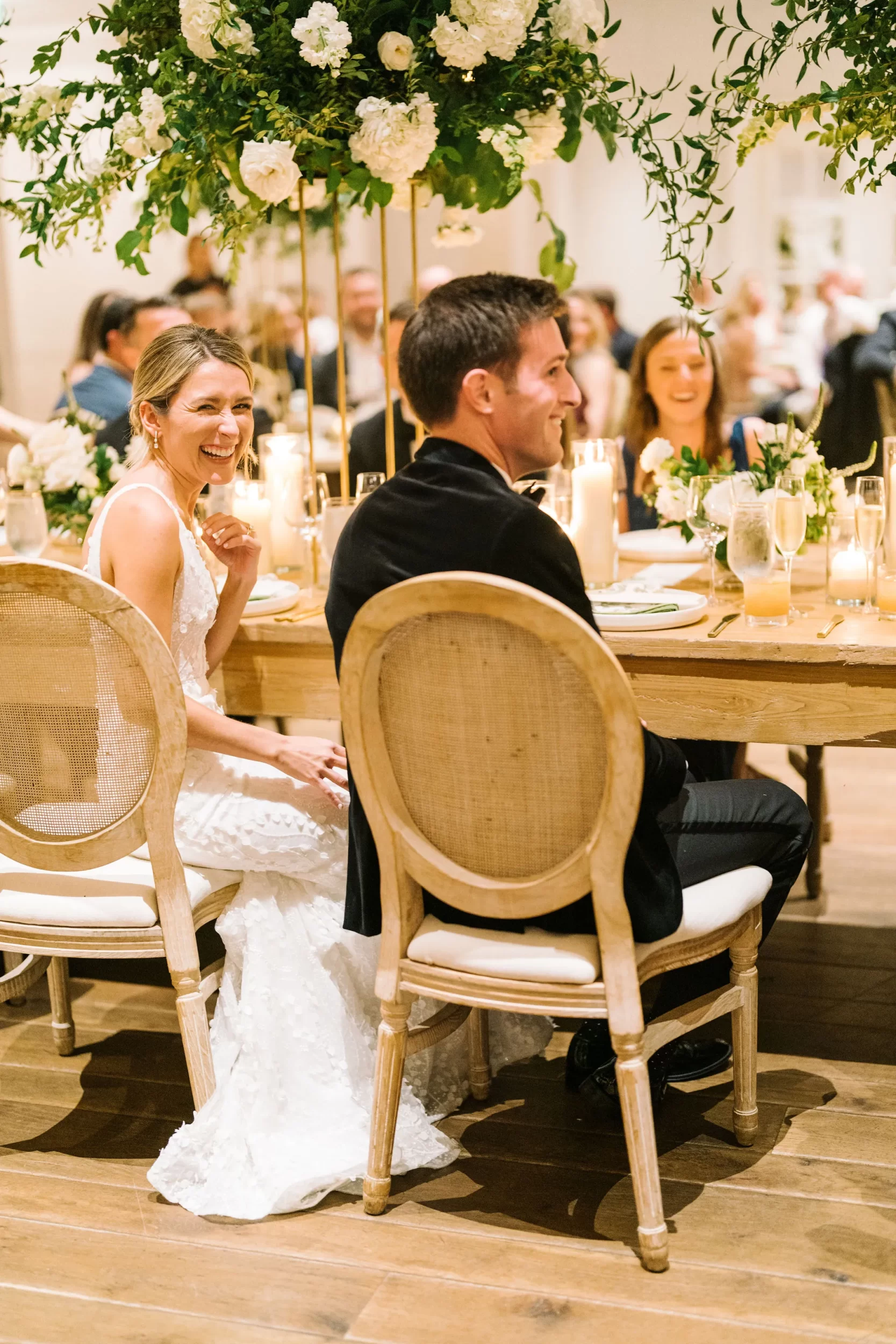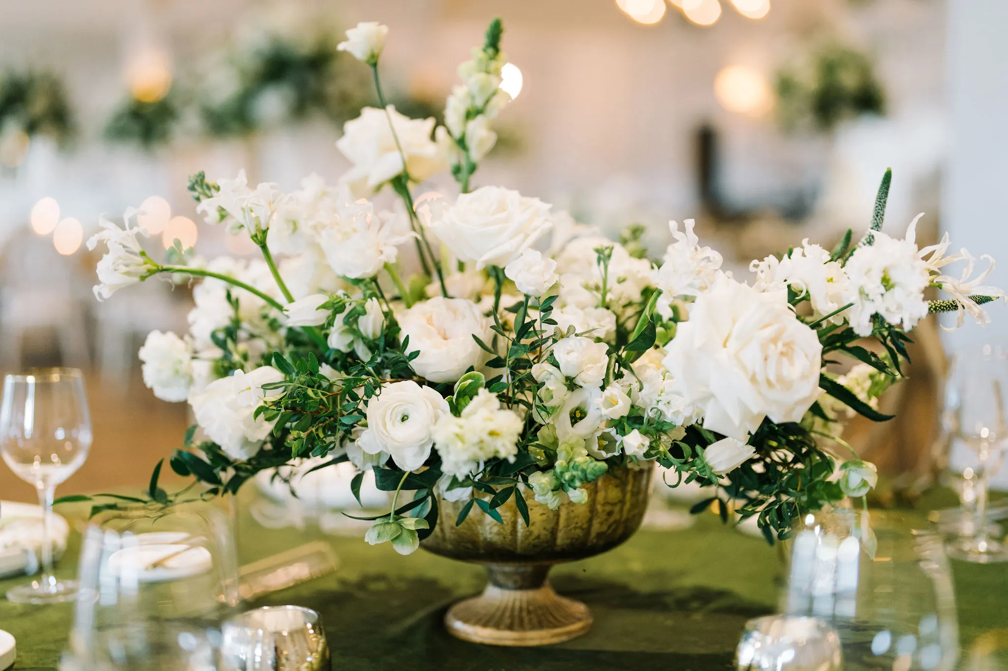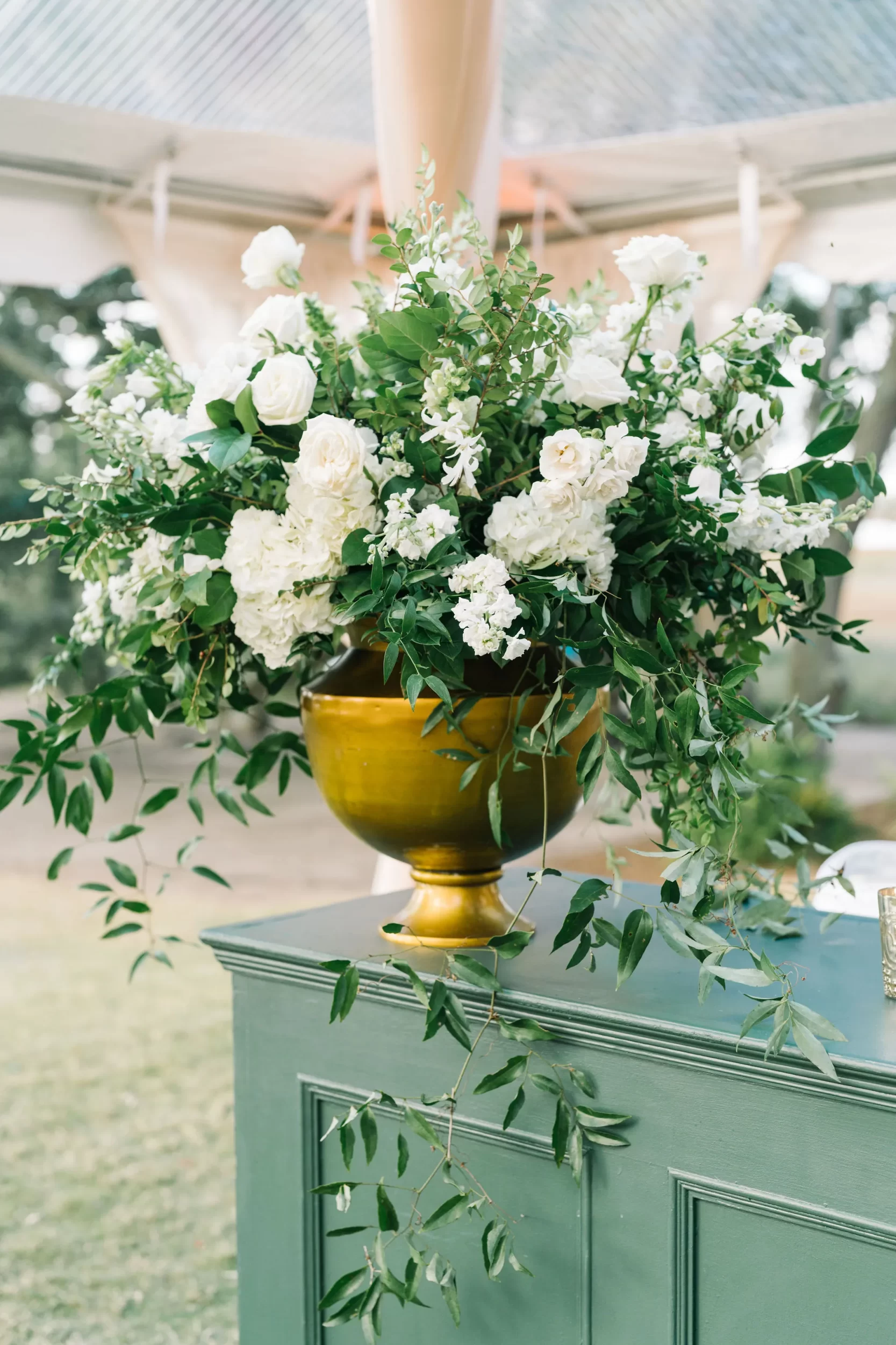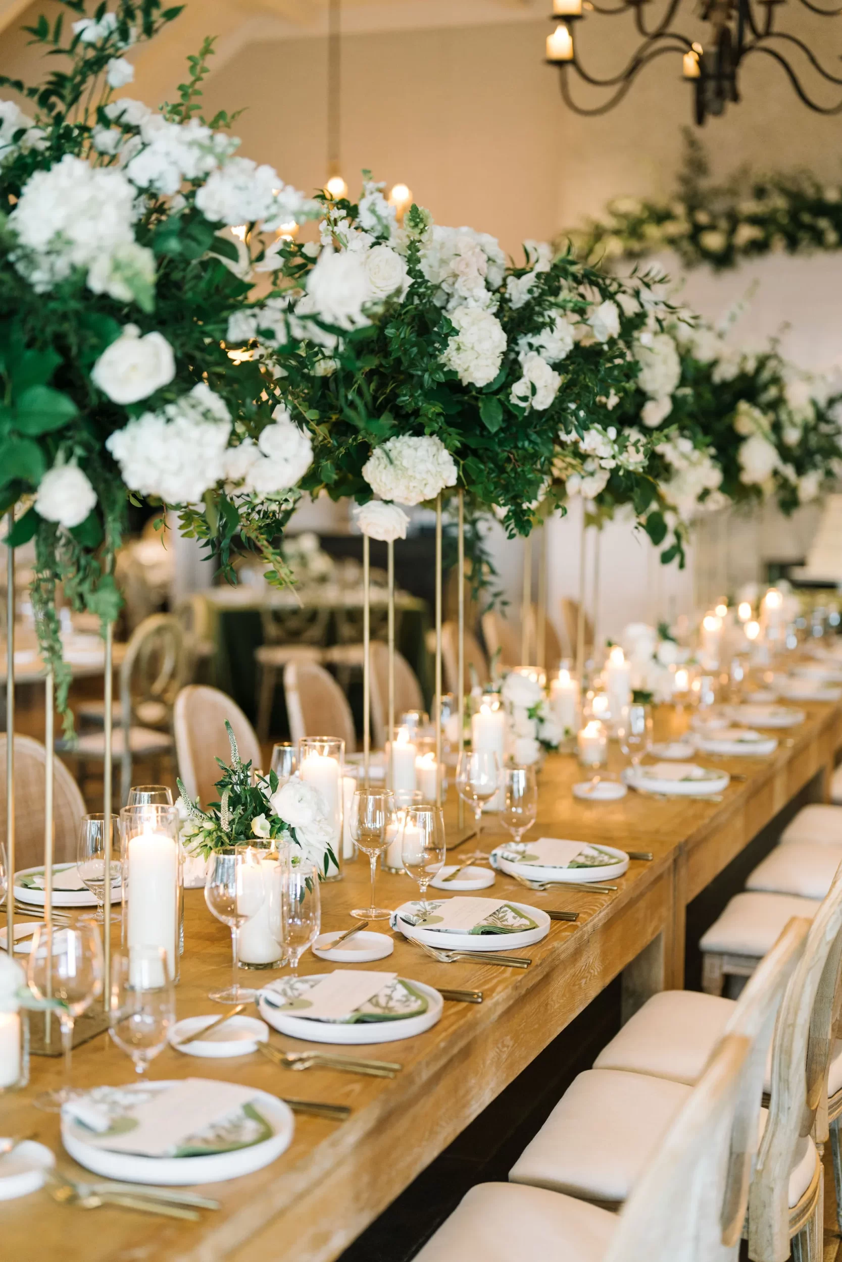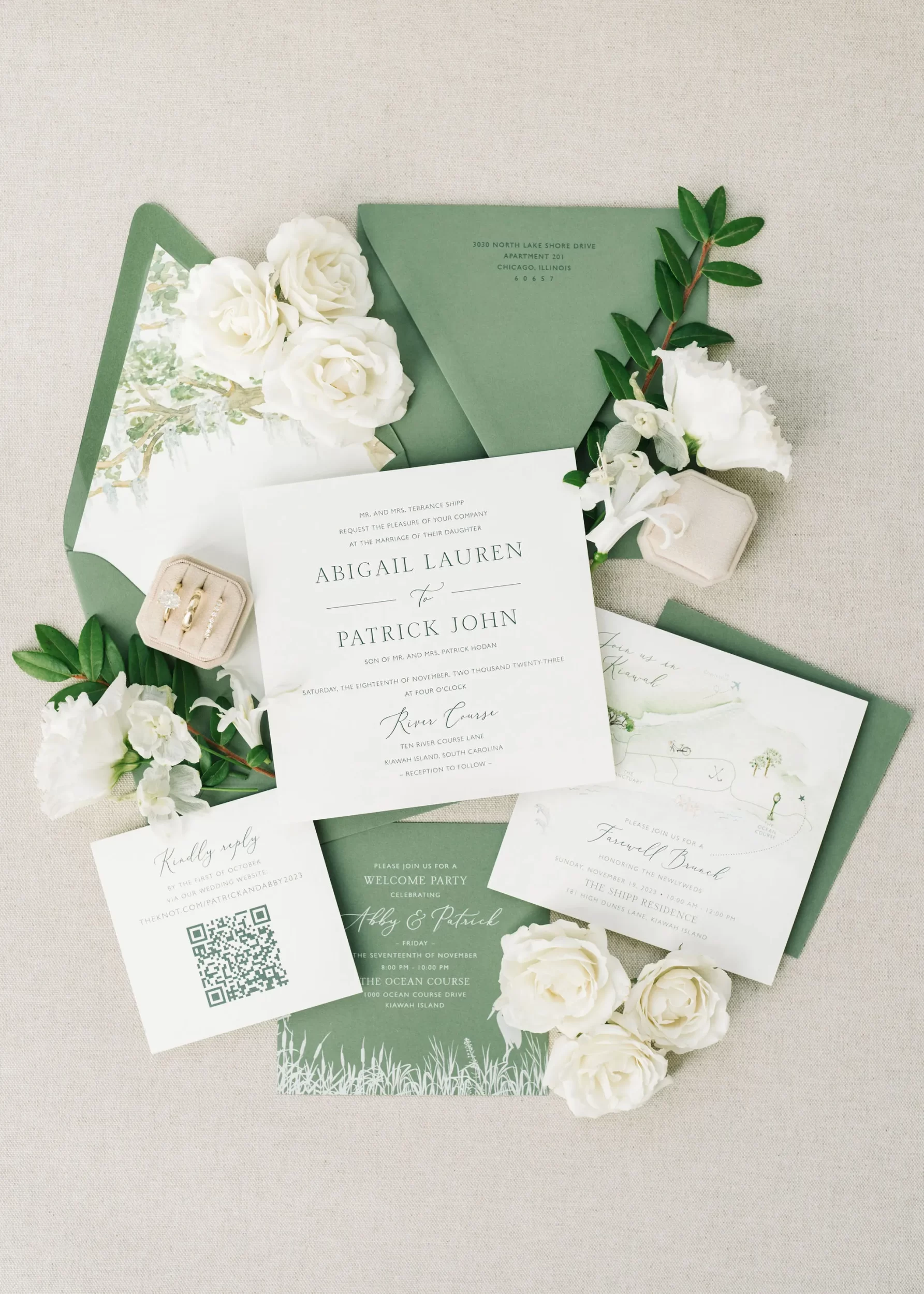 The entire day was beautifully planned and designed by the team at Pure Luxe Bride, who brought Abby and Patrick’s vision of a green, white, and gold wedding to life with sophisticated touches at every turn! From the Nuage and Stradley Davidson linens to the Studio R calligraphy and custom invitation suite, no detail was left undone.