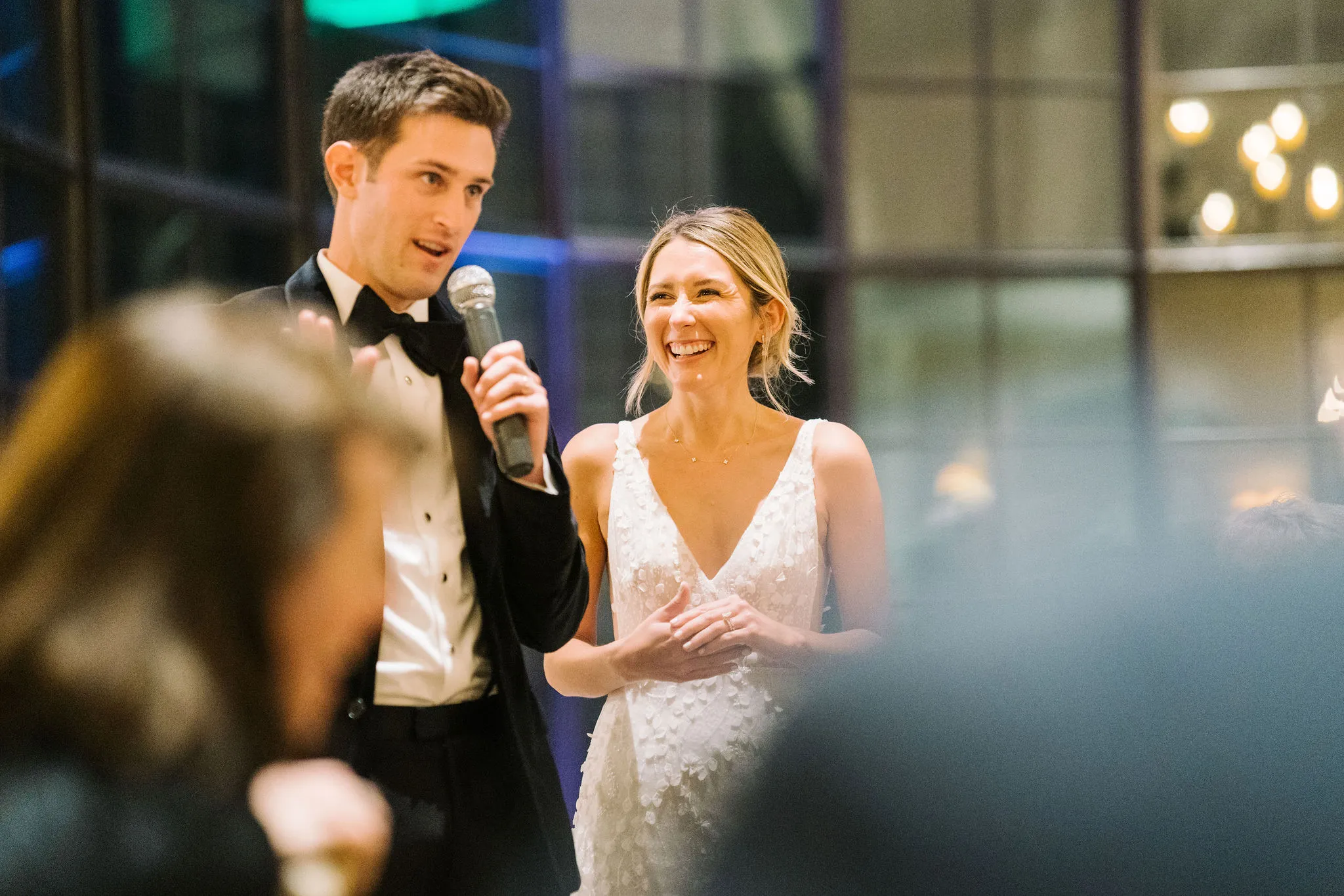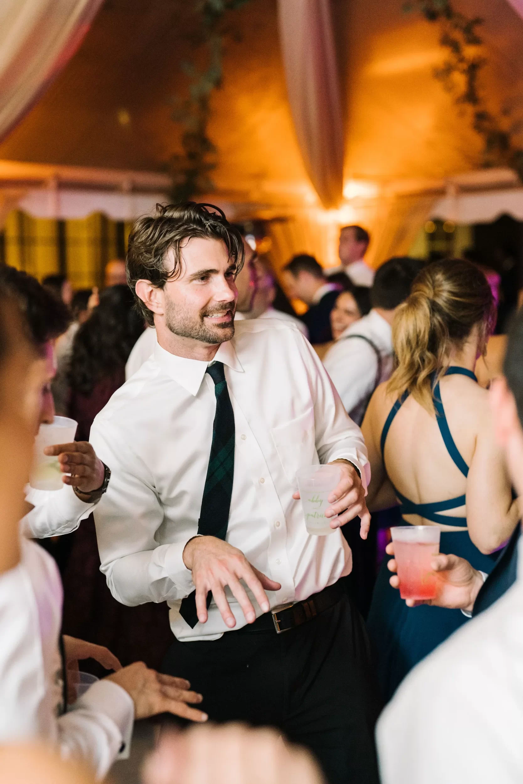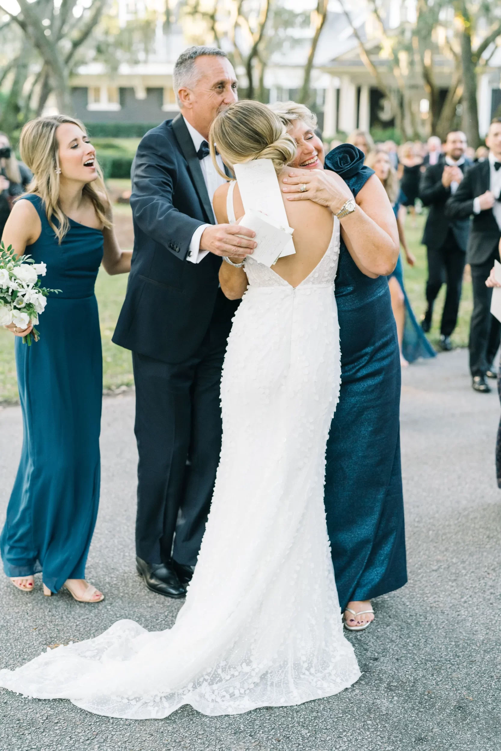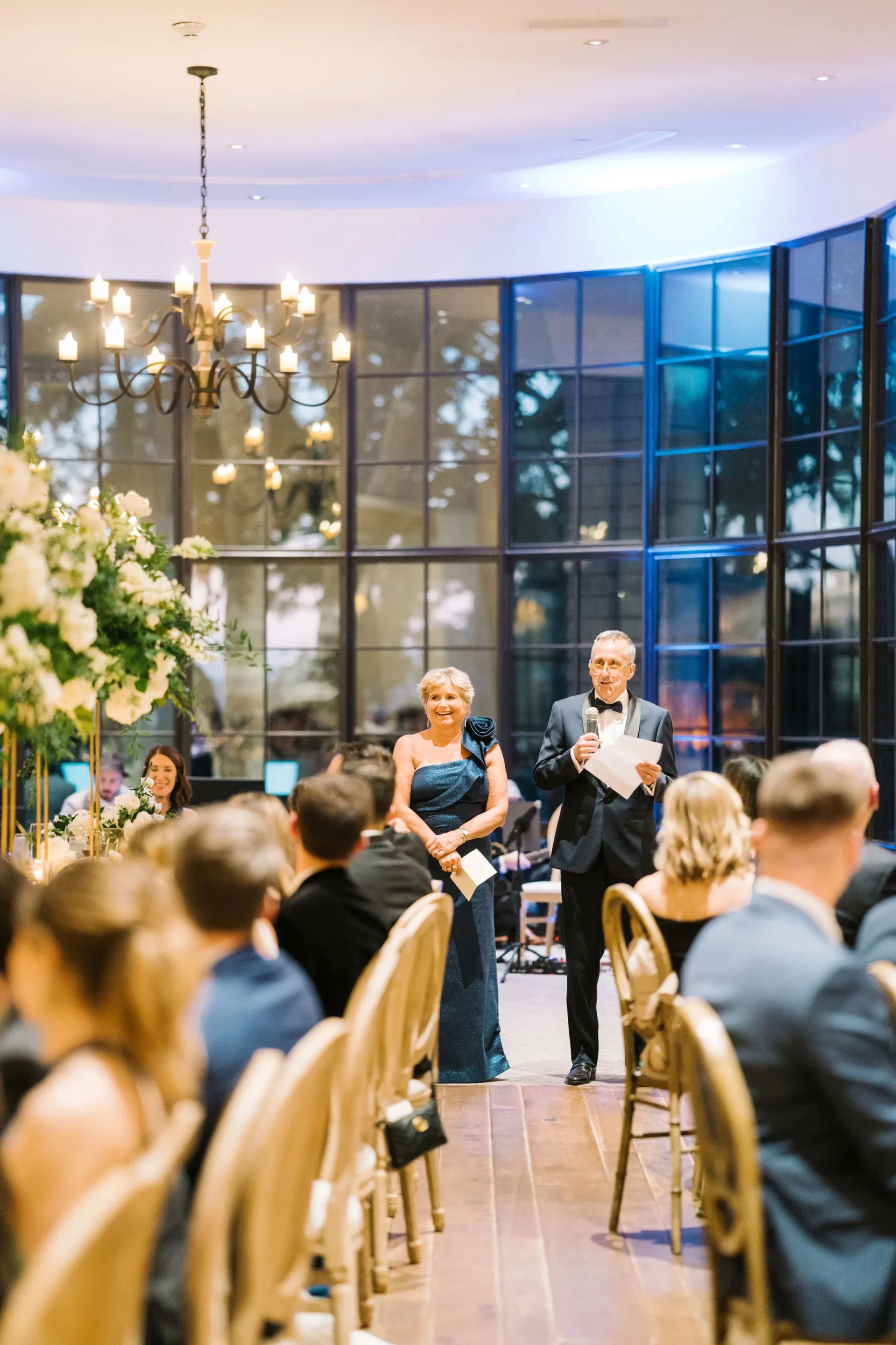 Dinner was served inside the candlelit main ballroom of the River Course, with live jazz music by LePlume, tall floral centerpieces, green velvet details, and creamy white florals from Petaloso that completely transformed the space!! After the sun set, guests were ushered out to a clear-top tent on the back lawn, where the real party began; complete with draping and lighting by Lowcountry Entertainment and dance-floor-packing beats from DJ Wade.