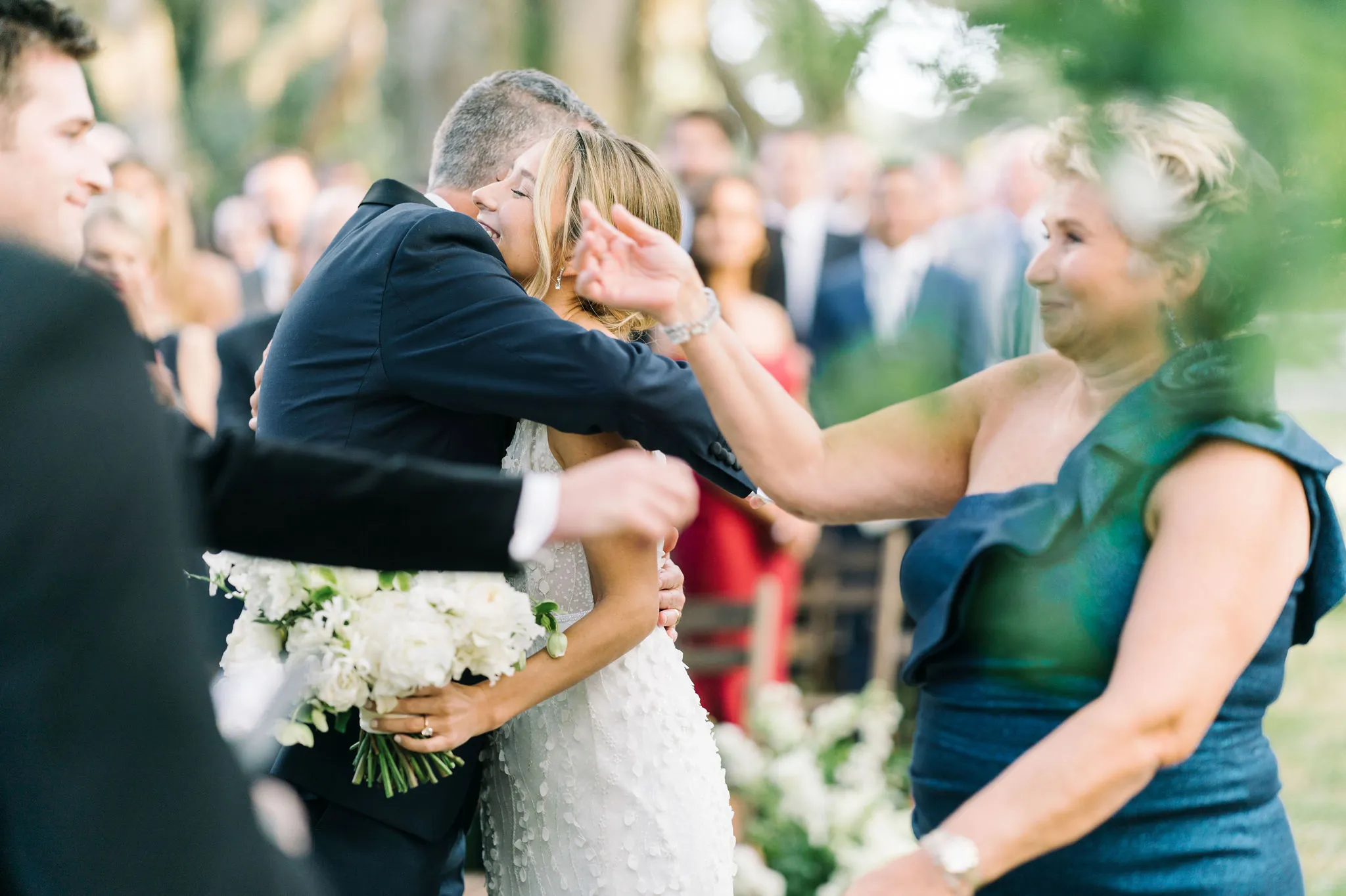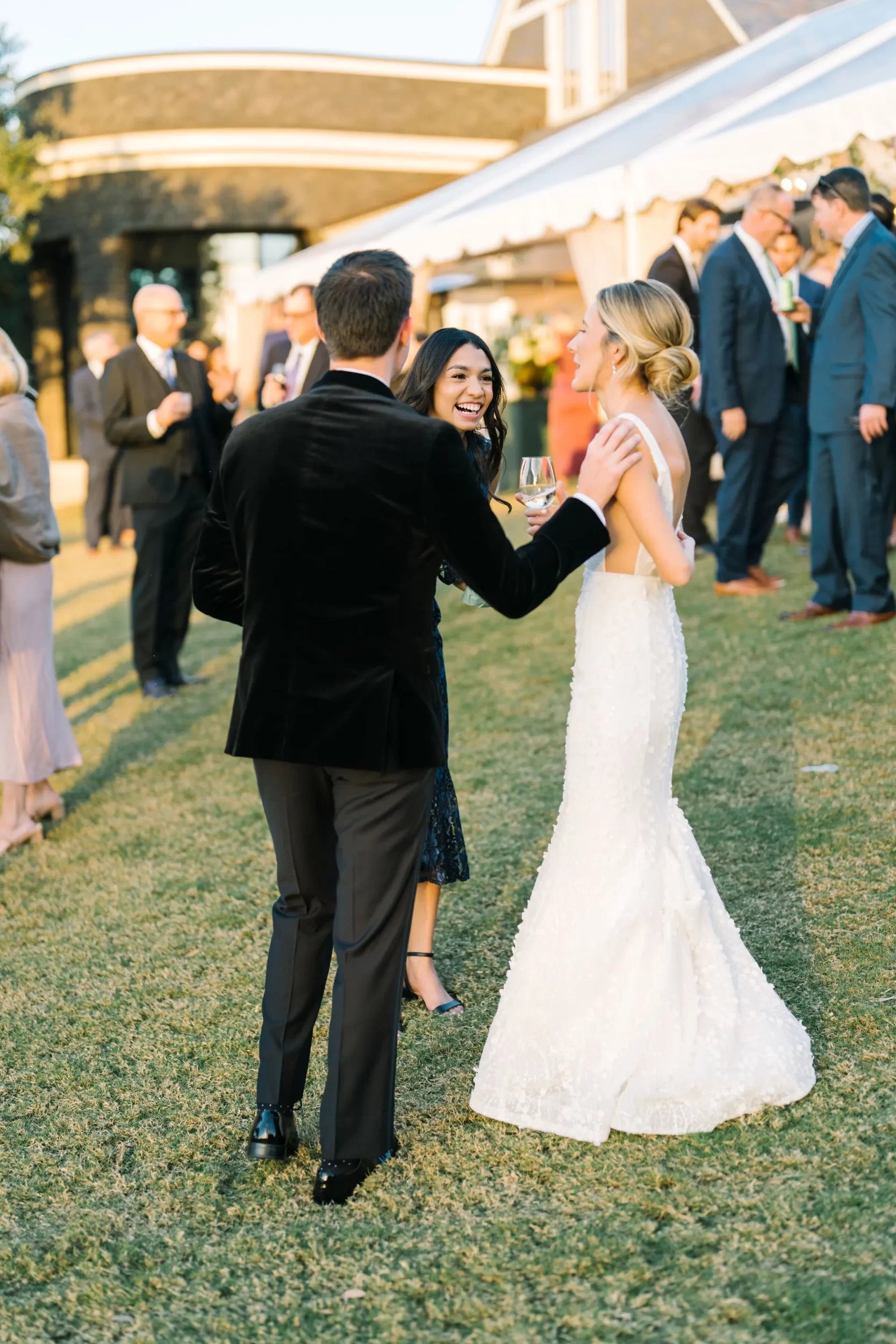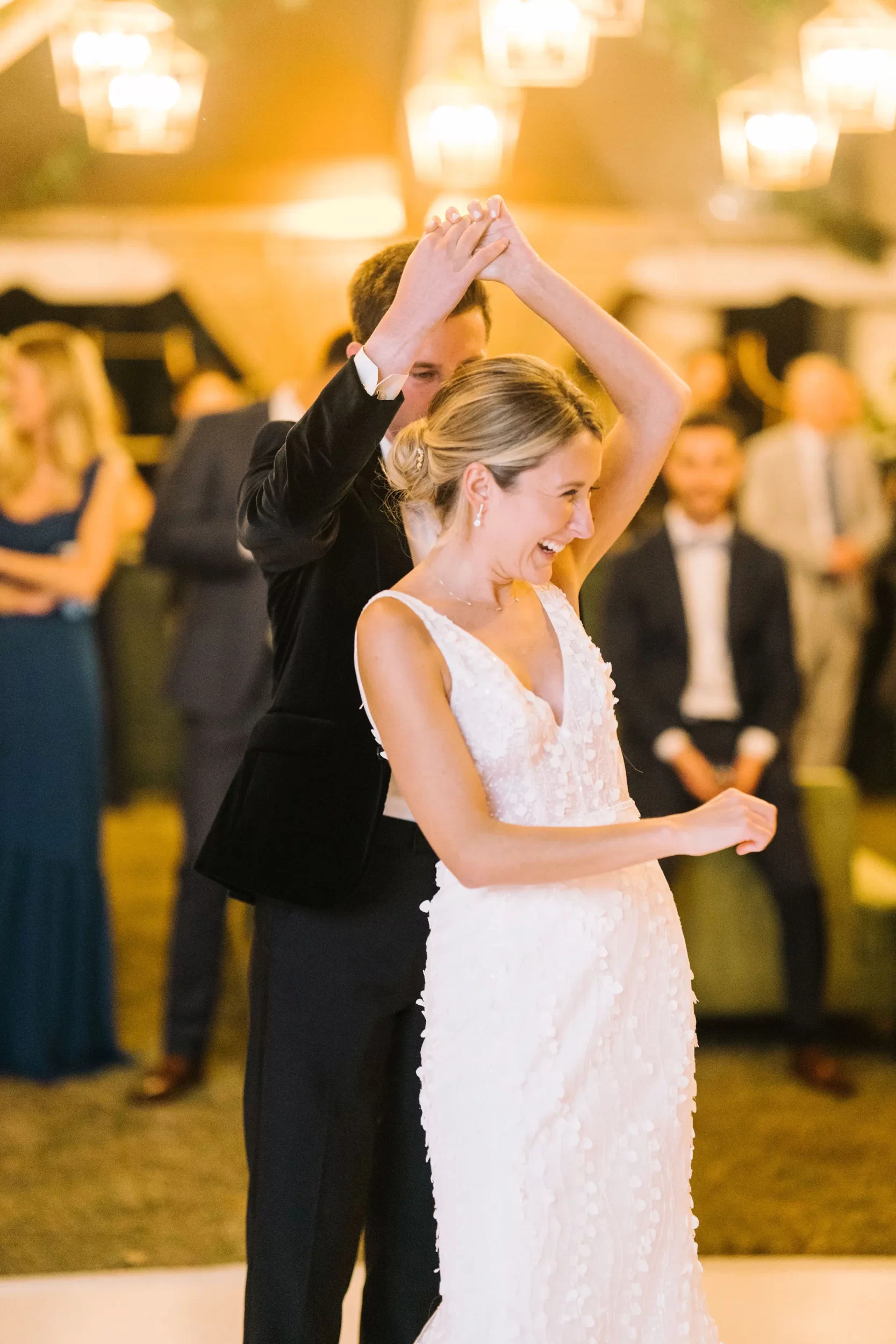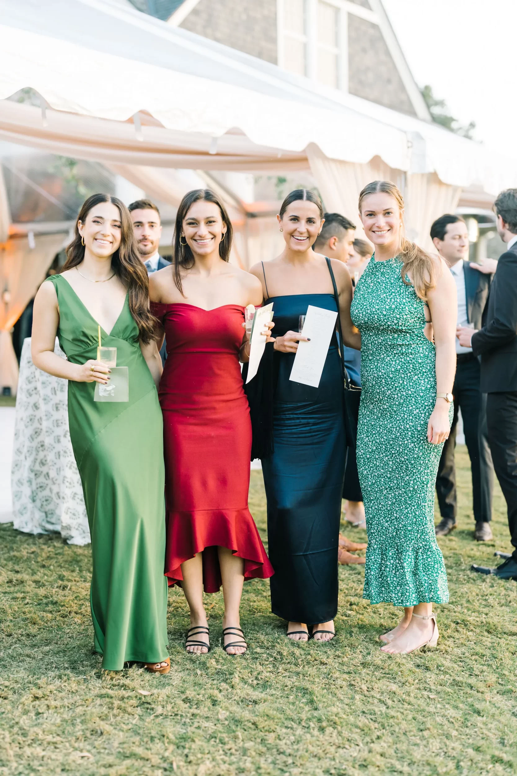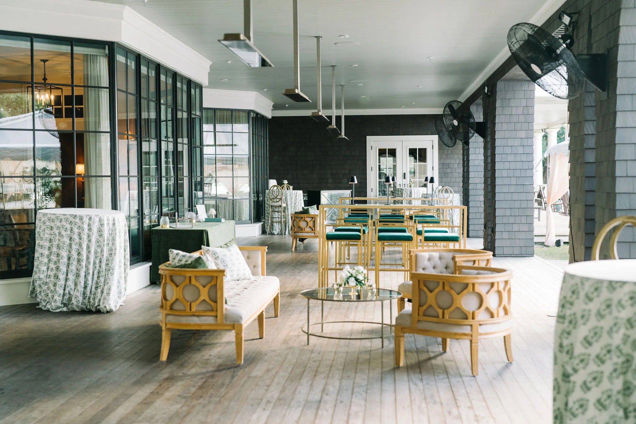 For the reception, guests enjoyed a custom dinner by Kiawah Island Club Catering, a stunning three-tiered cake by Ashley Bakery, and late-night dancing under the stars — complete with cozy green velvet lounge setups from EventWorks and floral covered bars framed by gold lanterns and draped greenery! It was such a gorgeous day!
