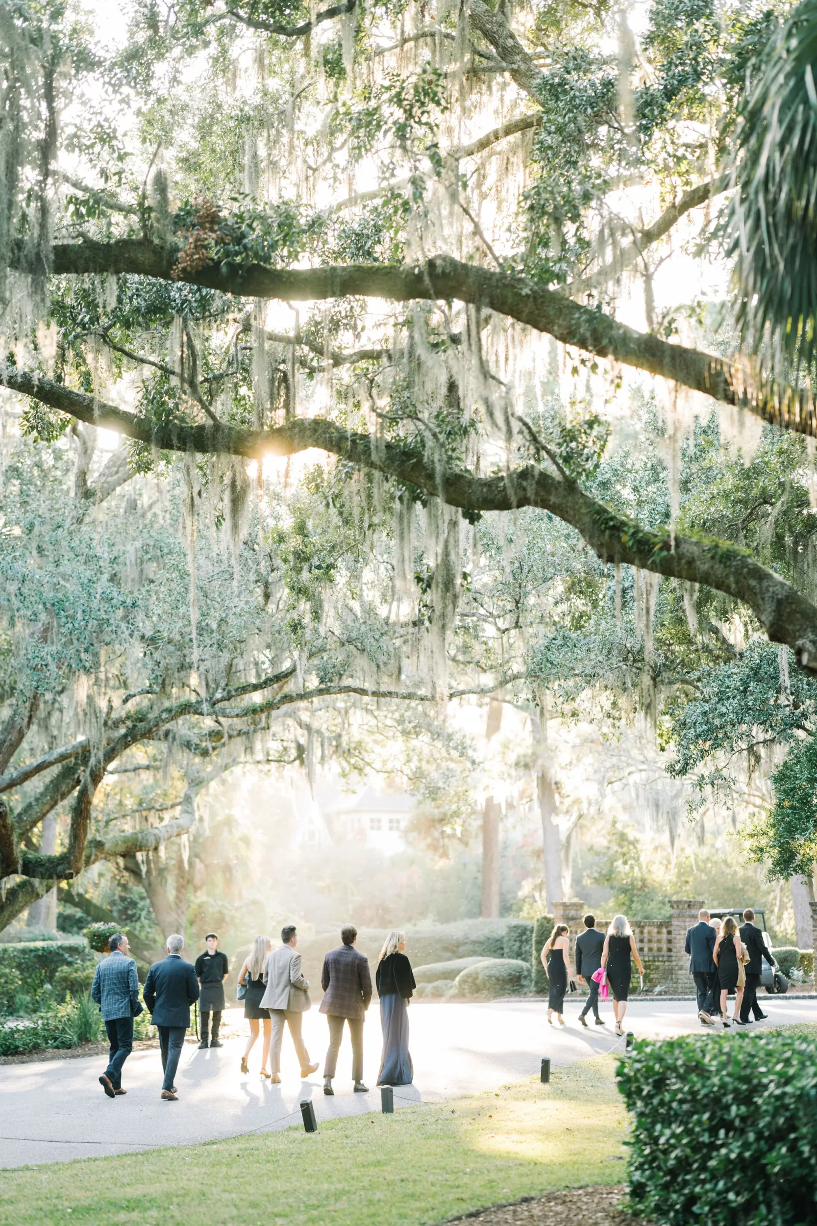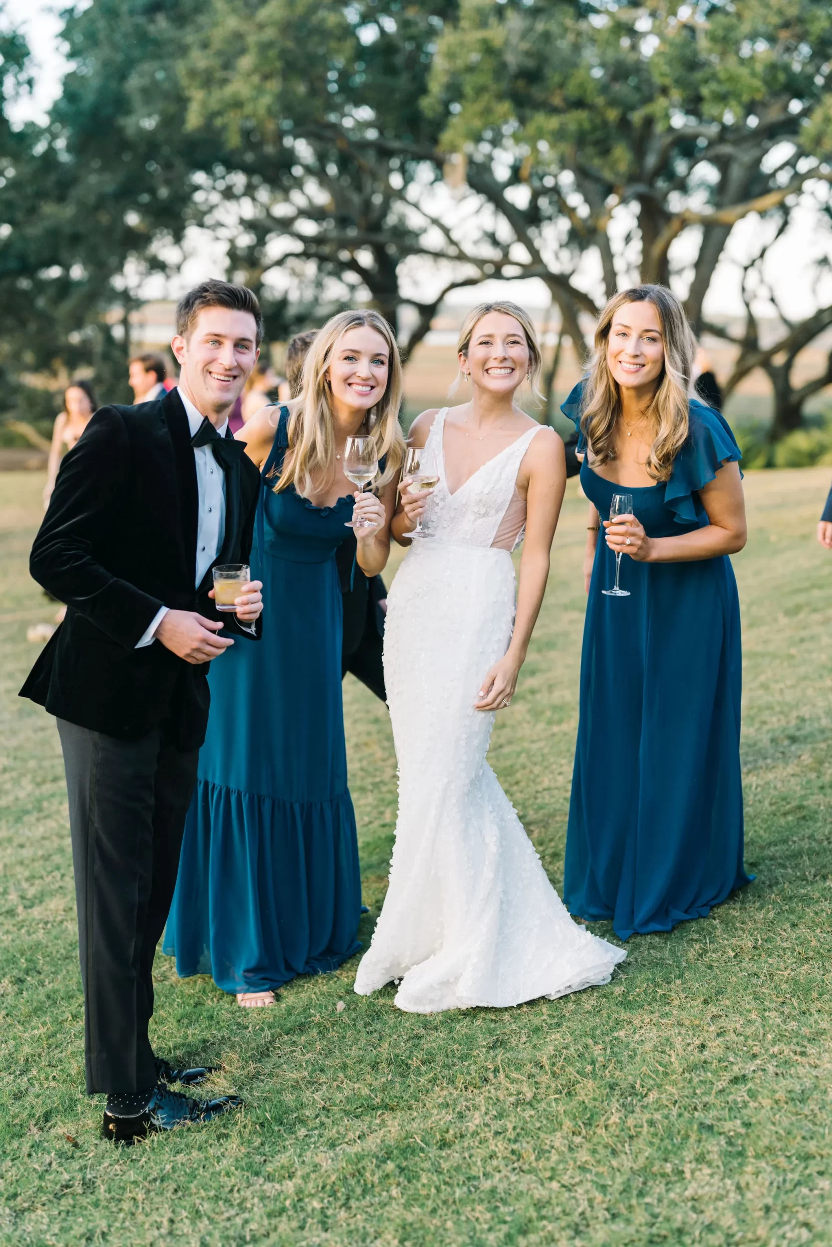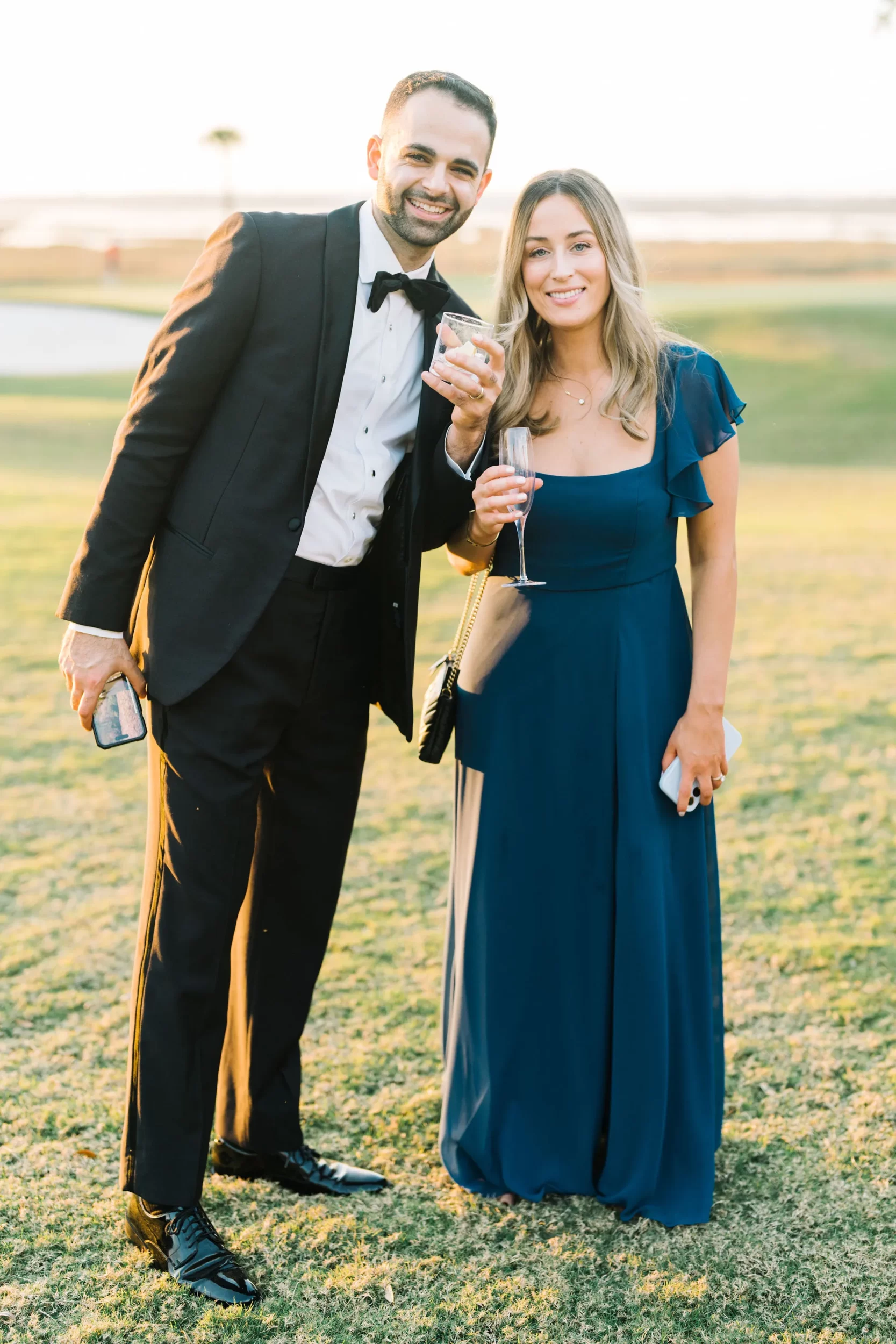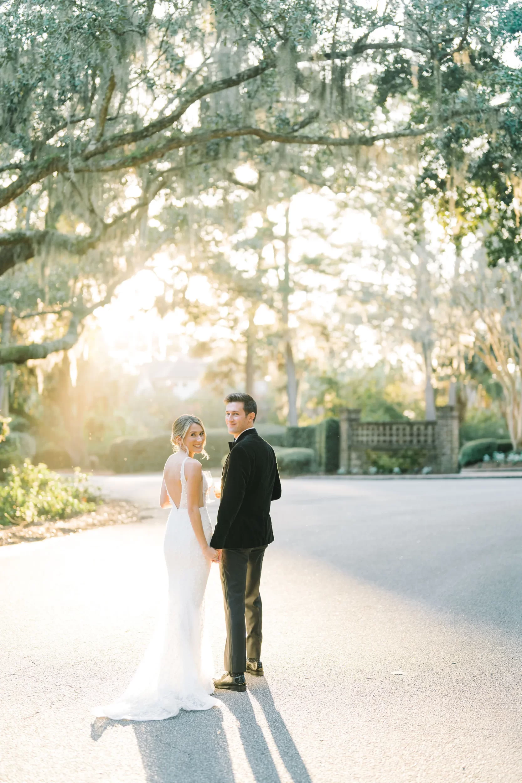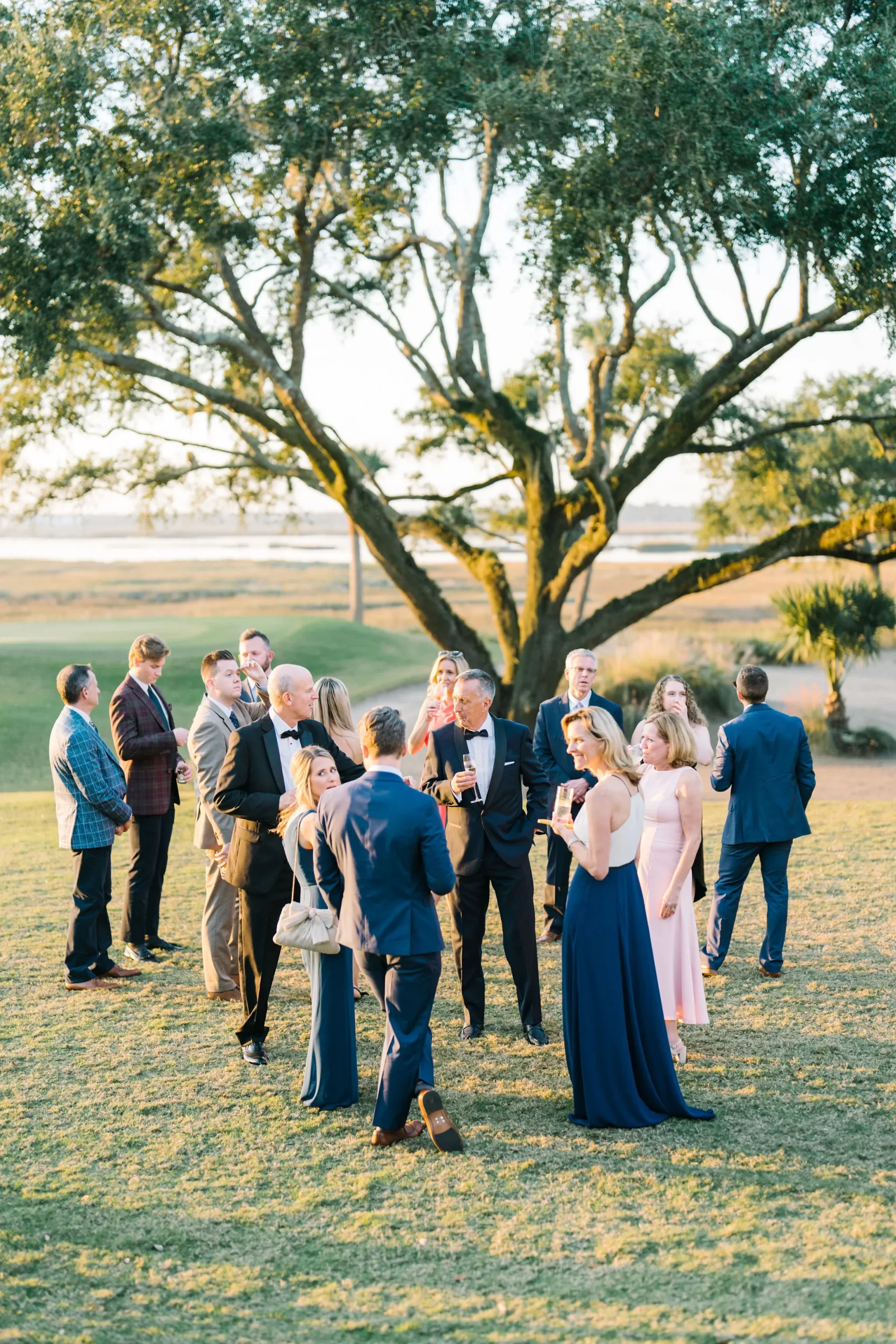With 150 guests in attendance, Abby & Patrick exchanged vows beneath the centuries-old Live Oak trees on the front lawn of the River Course Clubhouse, with live music by The Charleston Entertainment Trio, creating the perfect atmosphere! After the ceremony, guests were welcomed to cocktail hour overlooking the 18th green, surrounded by coastal views and the prettiest golden sunlight.