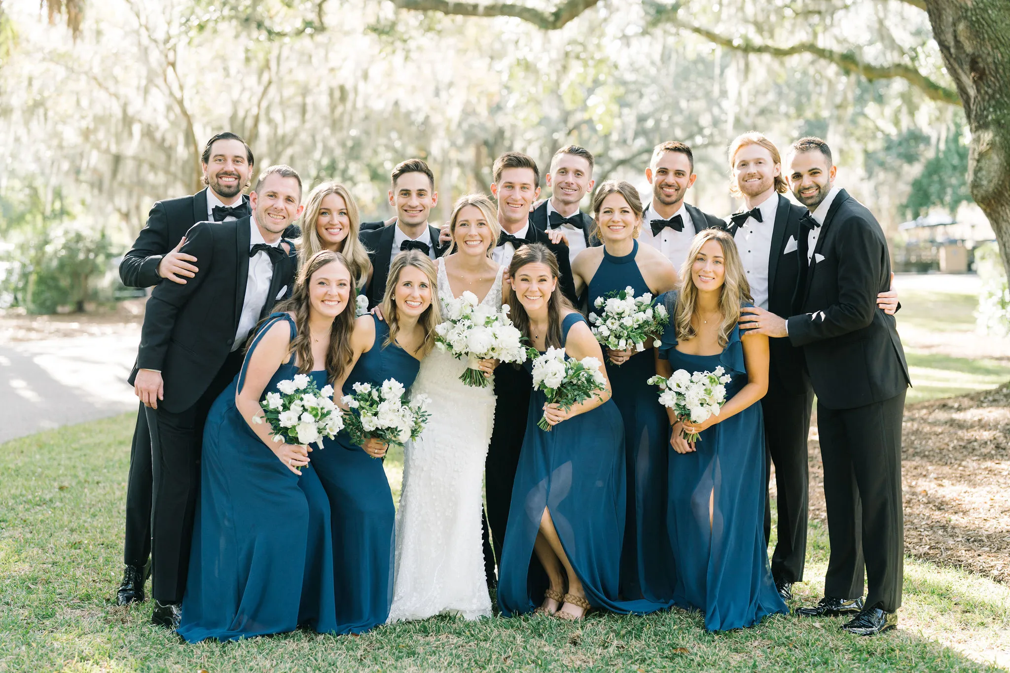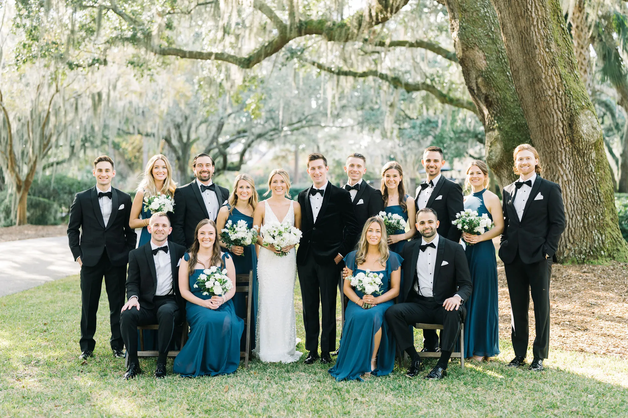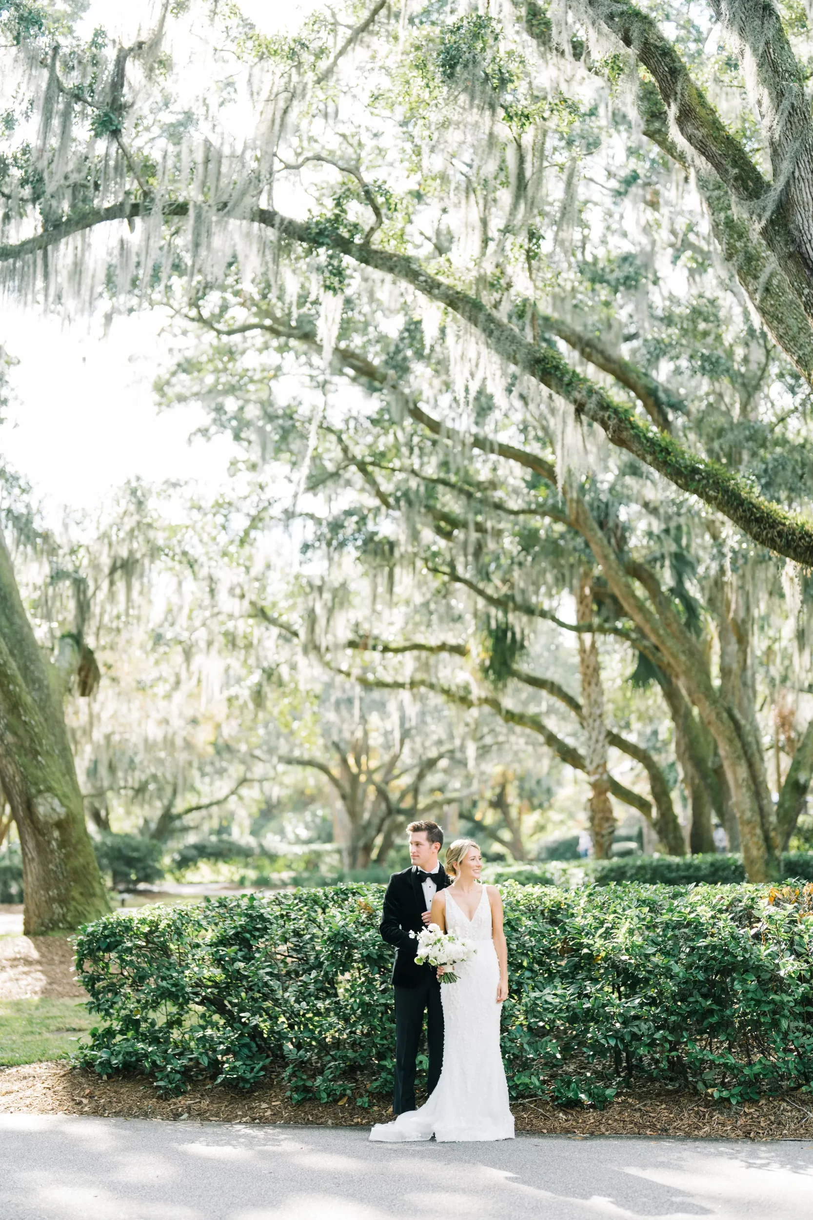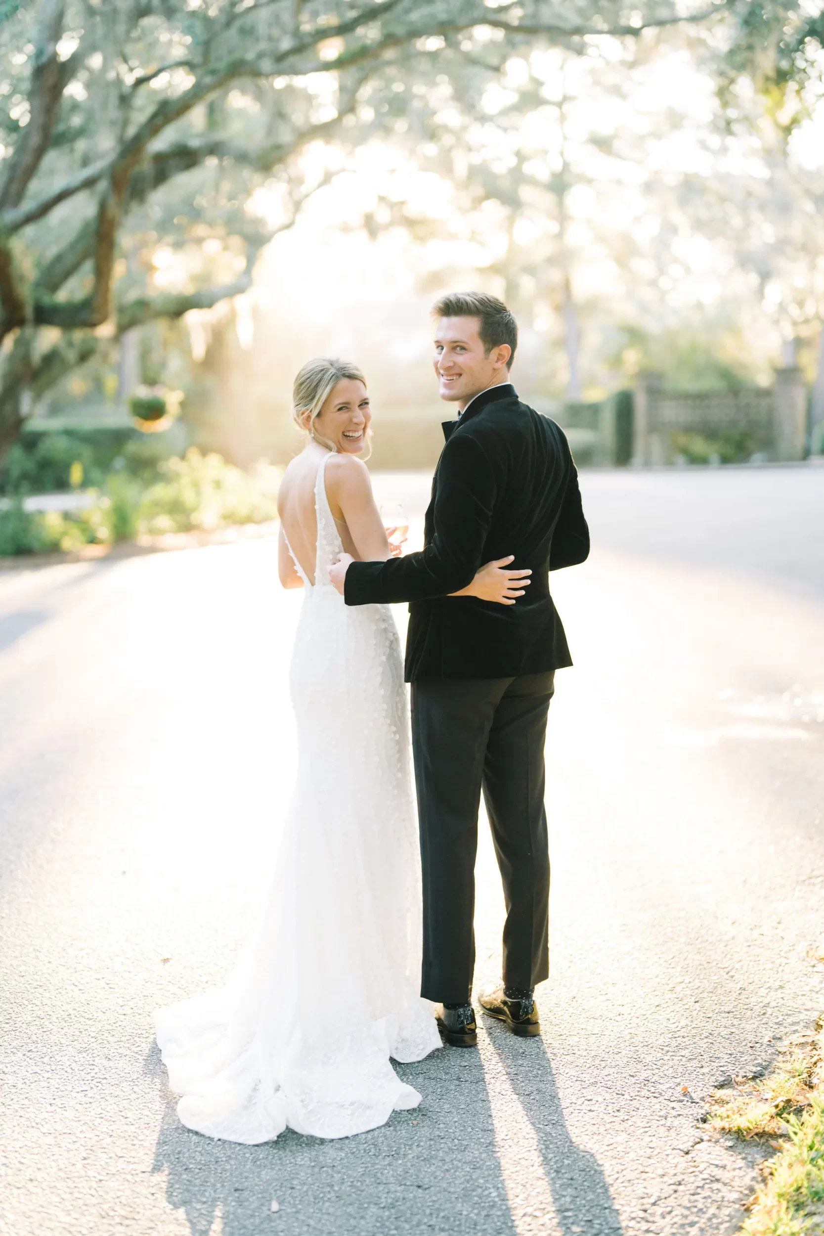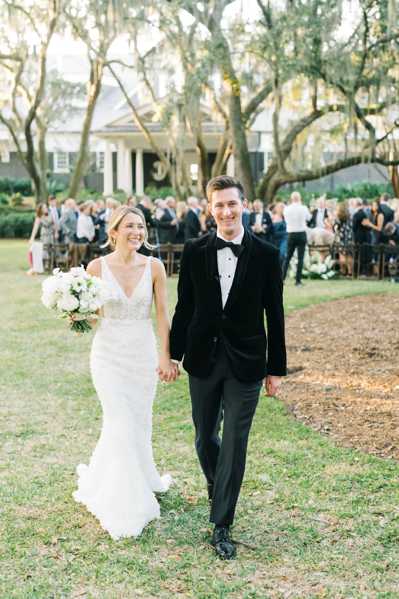 With 150 guests in attendance, Abby & Patrick exchanged vows beneath the centuries-old Live Oak trees on the front lawn of the River Course Clubhouse, with live music by The Charleston Entertainment Trio, creating the perfect atmosphere! After the ceremony, guests were welcomed to cocktail hour overlooking the 18th green, surrounded by coastal views and the prettiest golden sunlight.