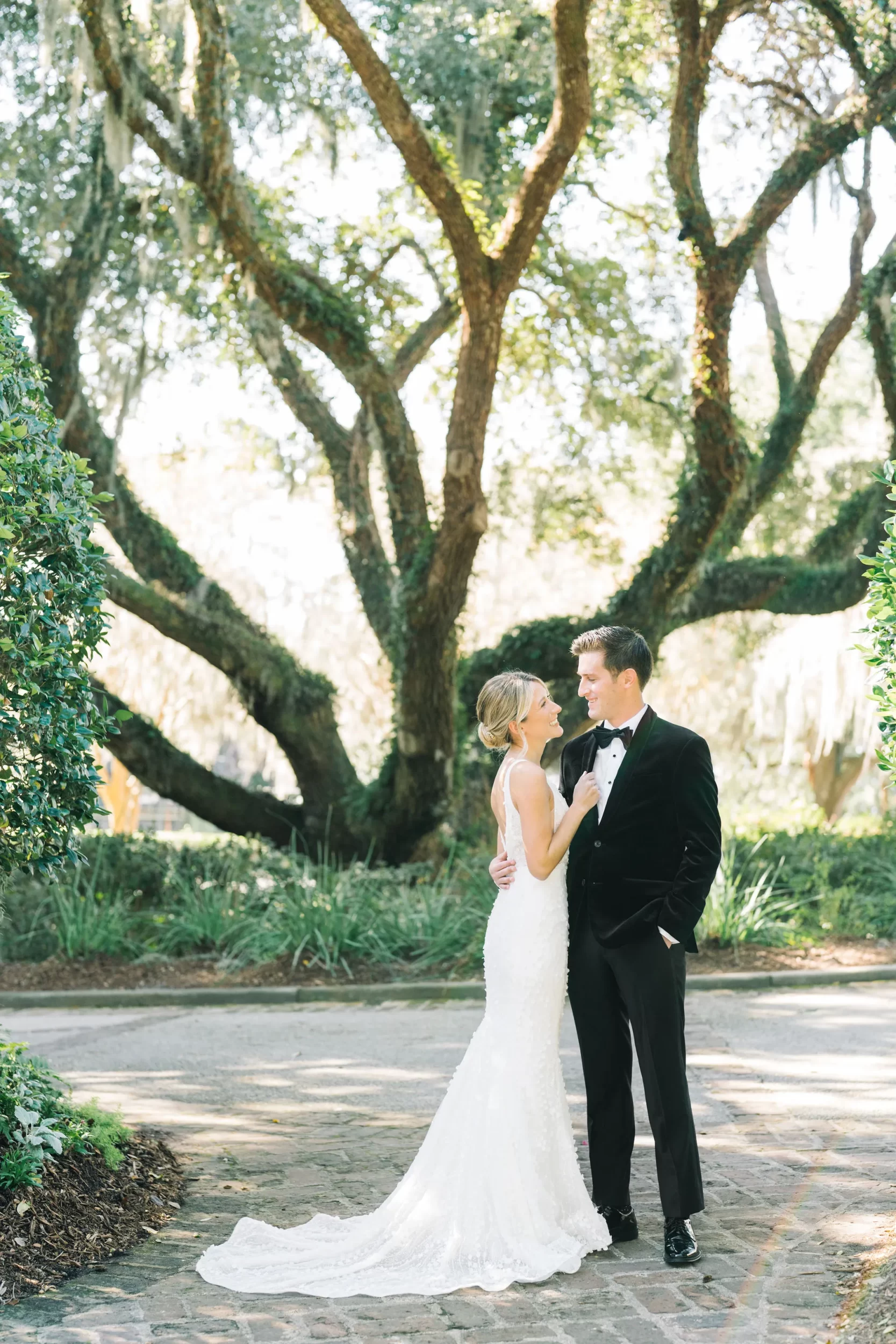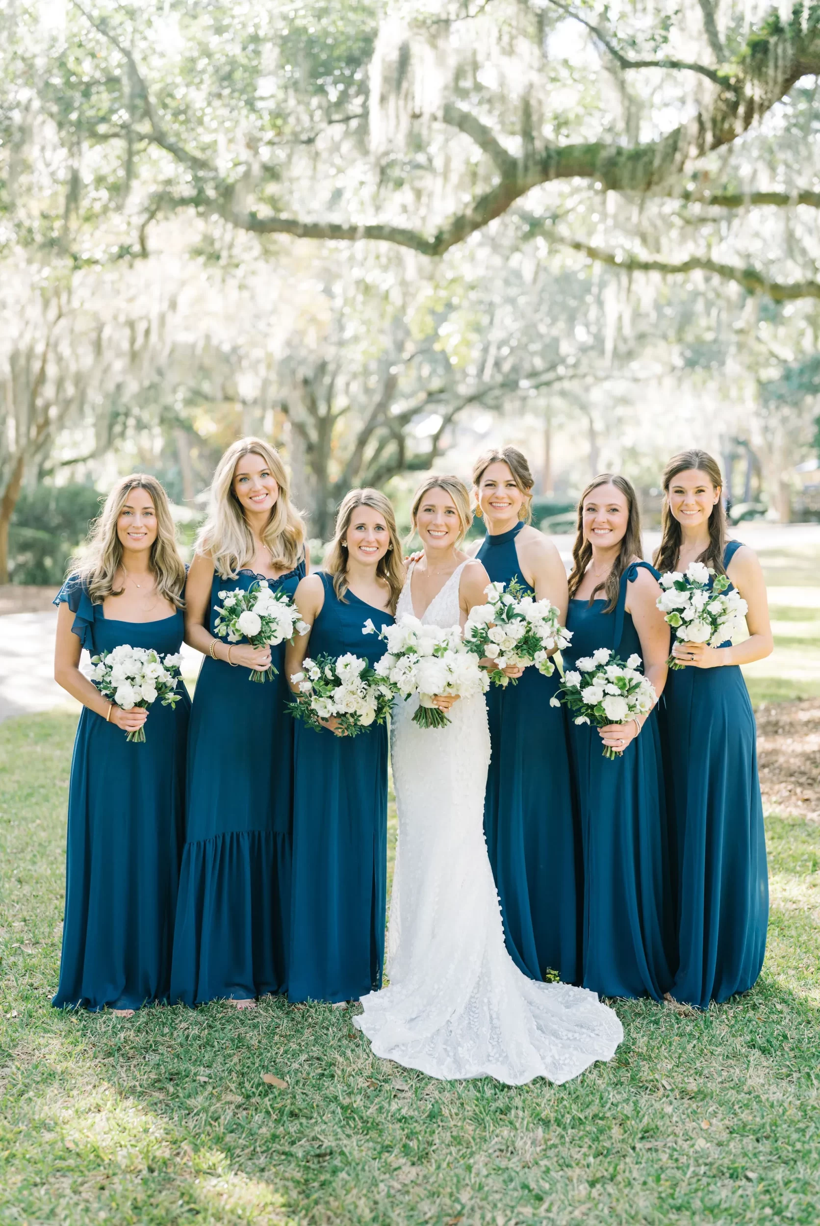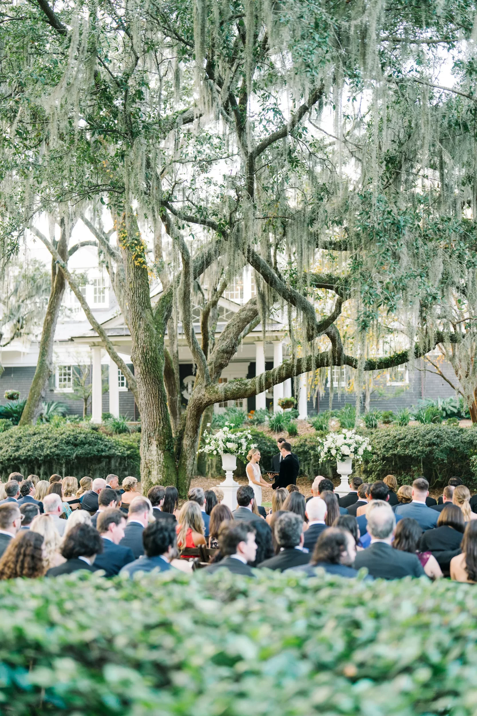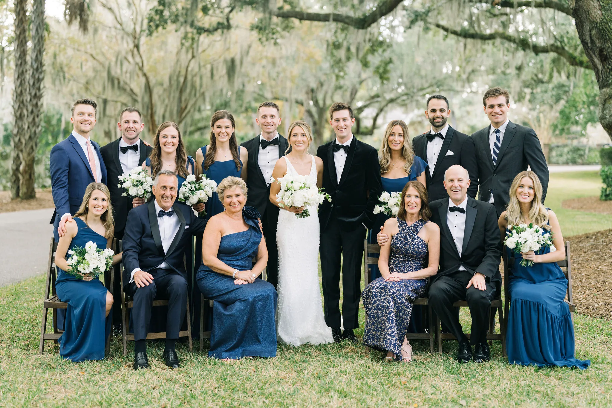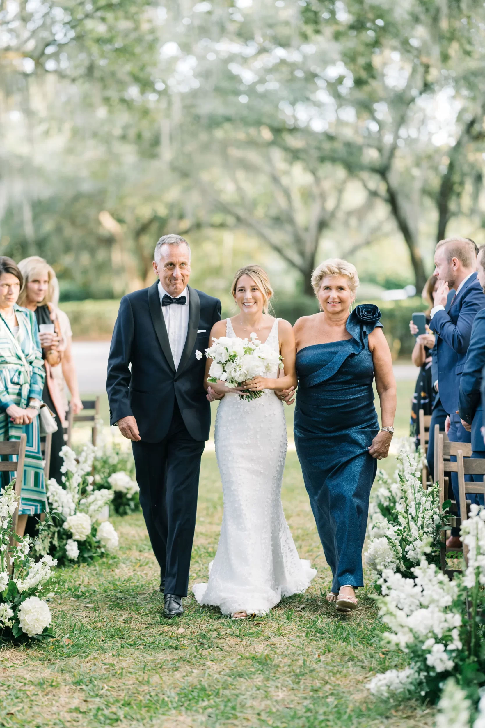 With 150 guests in attendance, Abby & Patrick exchanged vows beneath the centuries-old Live Oak trees on the front lawn of the River Course Clubhouse, with live music by The Charleston Entertainment Trio, creating the perfect atmosphere! After the ceremony, guests were welcomed to cocktail hour overlooking the 18th green, surrounded by coastal views and the prettiest golden sunlight.