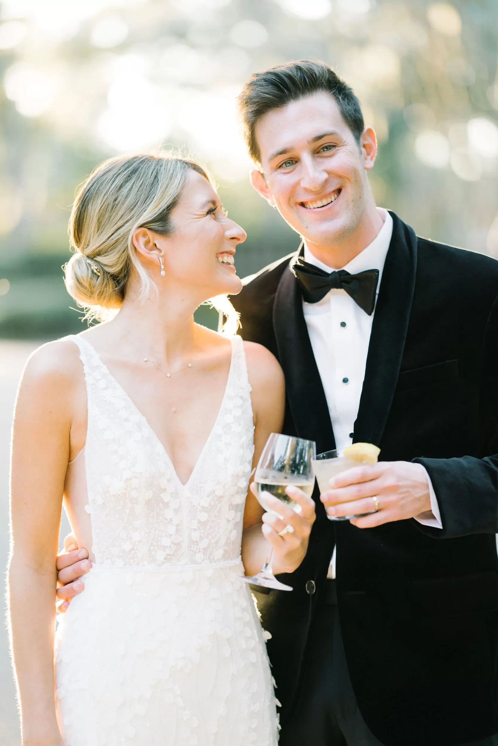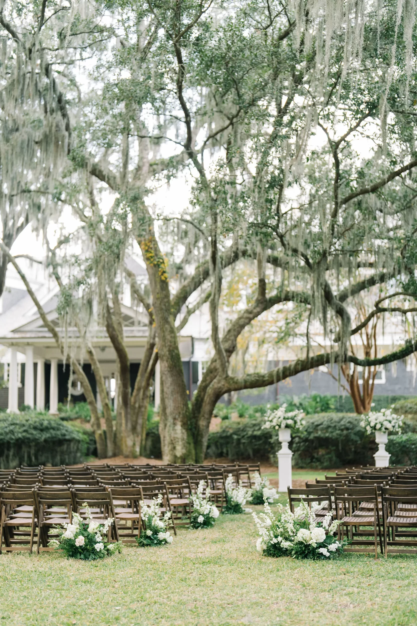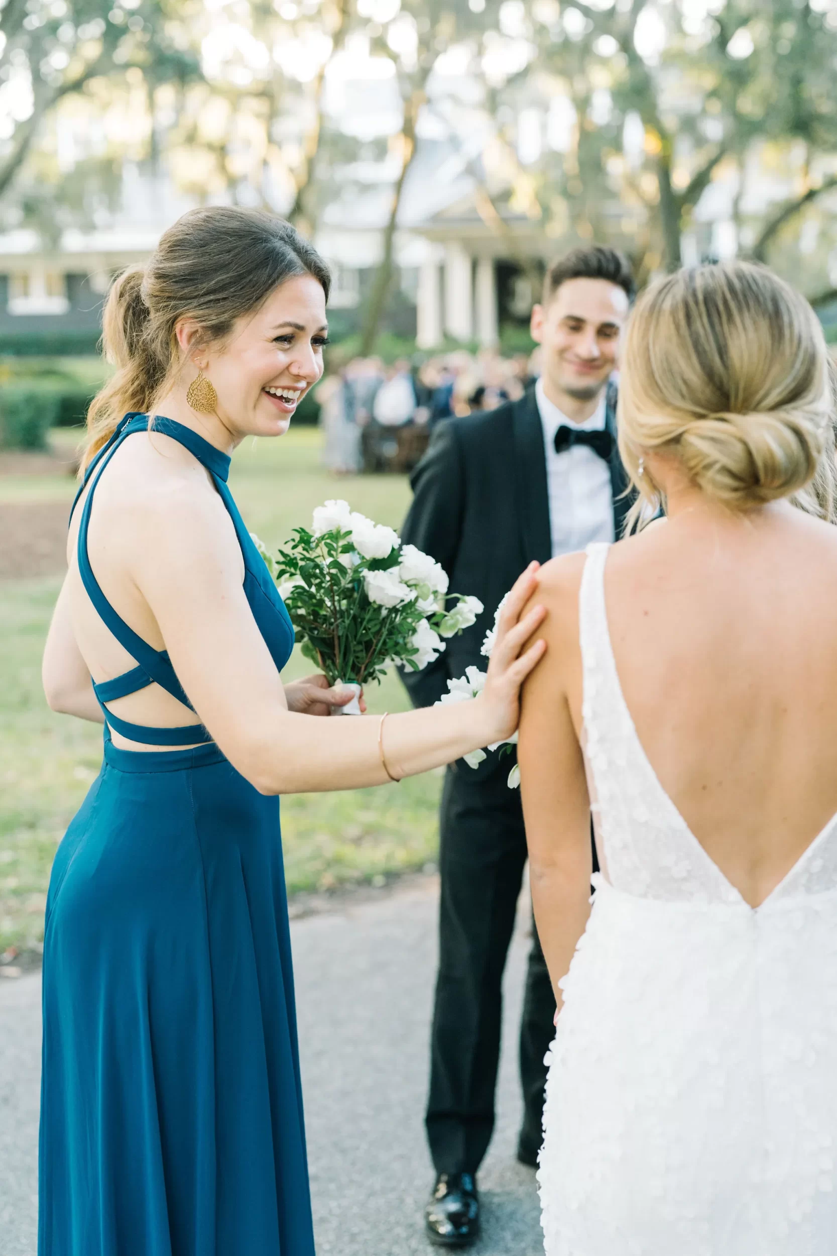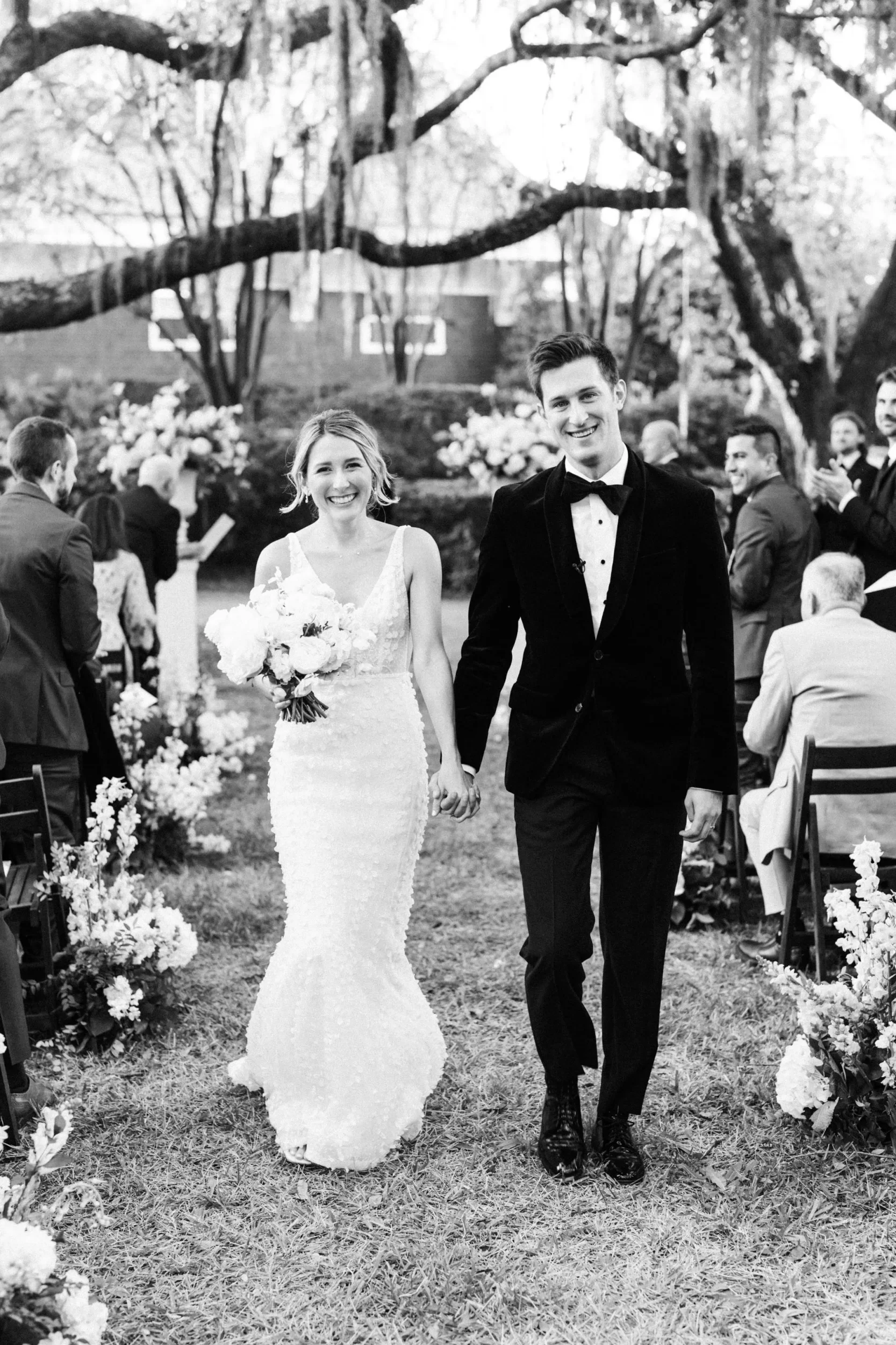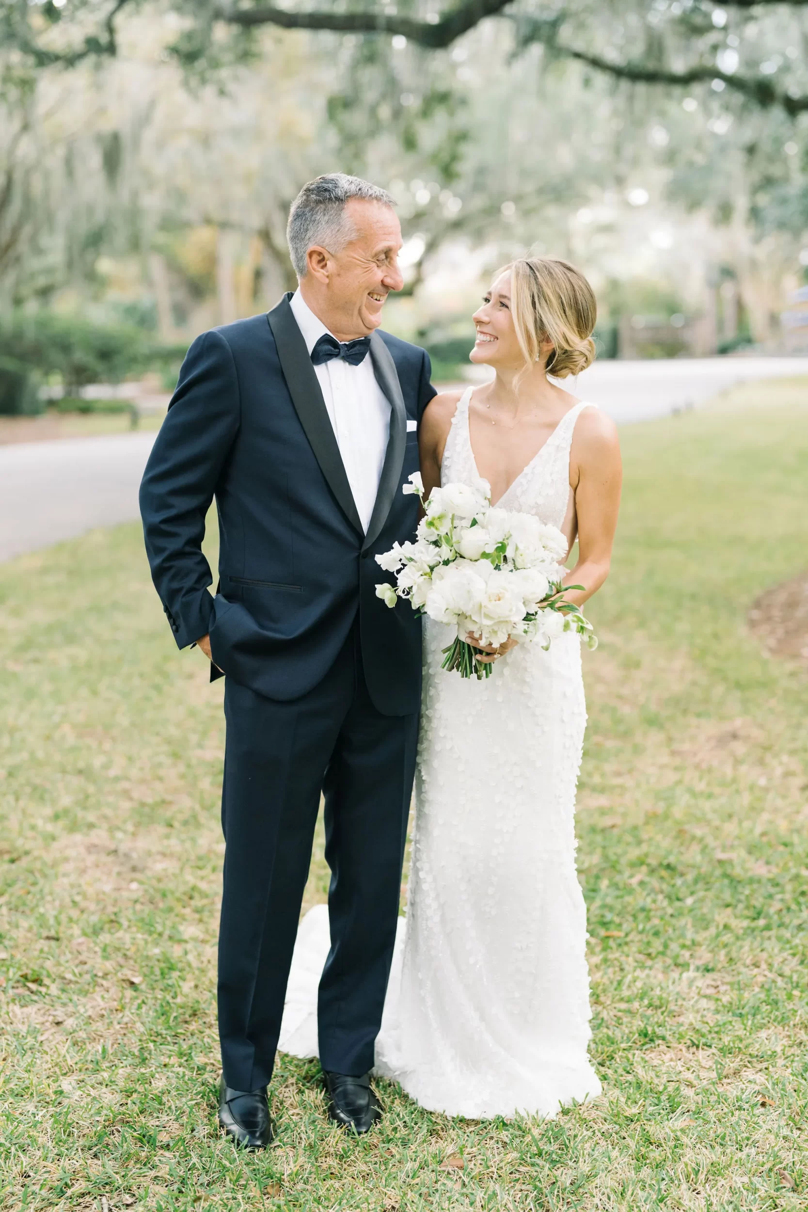 With 150 guests in attendance, Abby & Patrick exchanged vows beneath the centuries-old Live Oak trees on the front lawn of the River Course Clubhouse, with live music by The Charleston Entertainment Trio, creating the perfect atmosphere! After the ceremony, guests were welcomed to cocktail hour overlooking the 18th green, surrounded by coastal views and the prettiest golden sunlight.