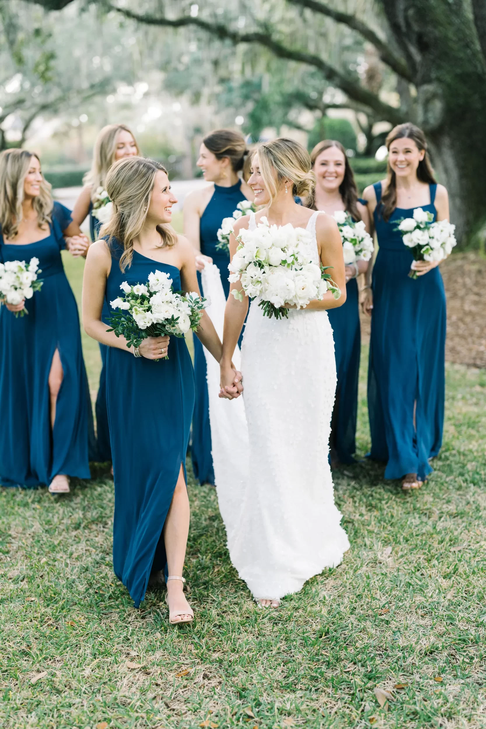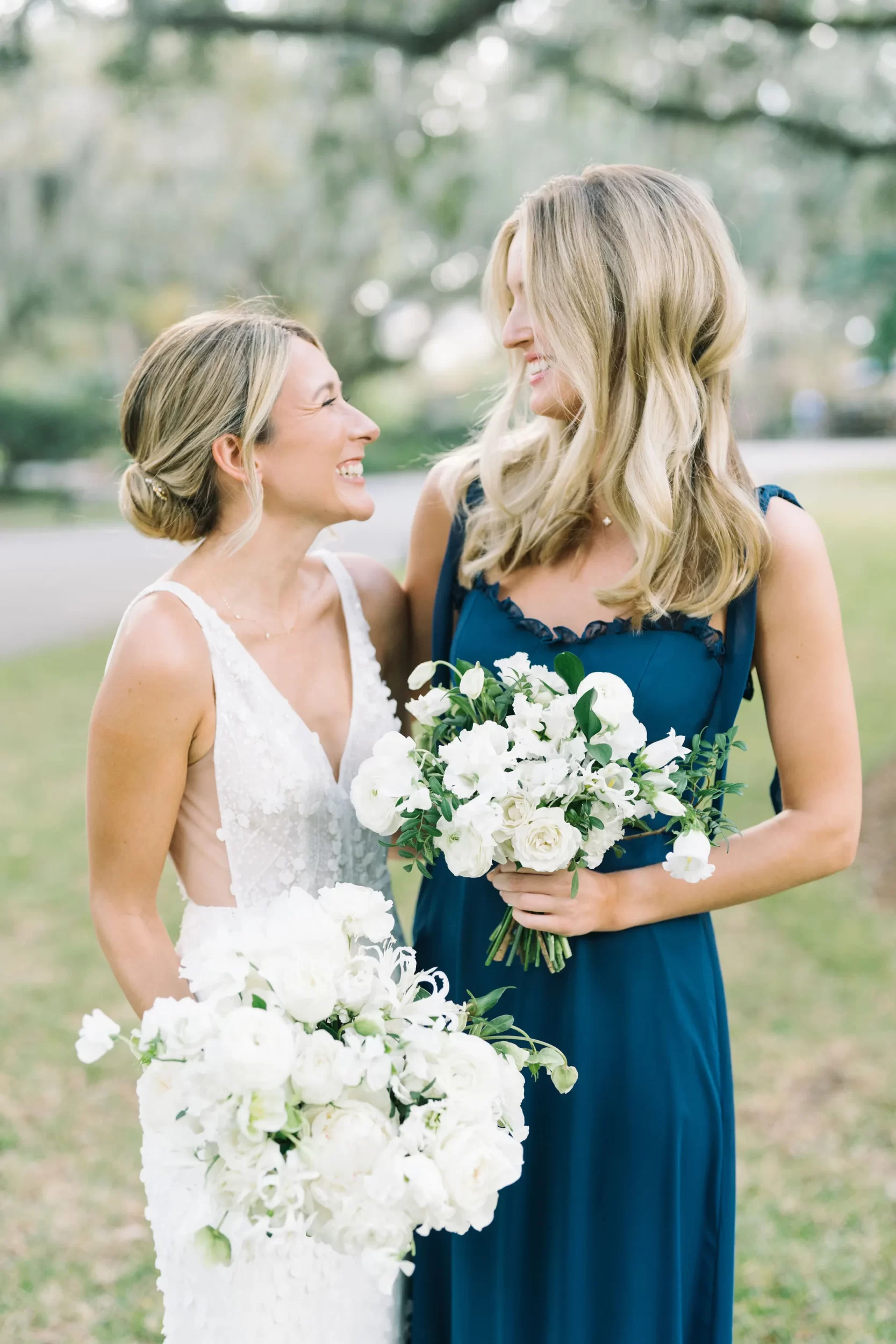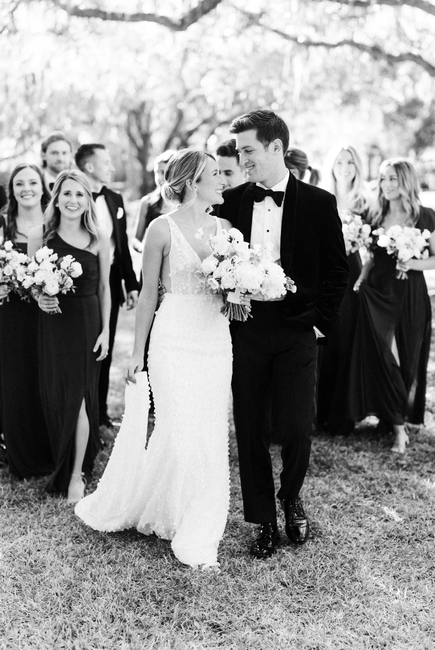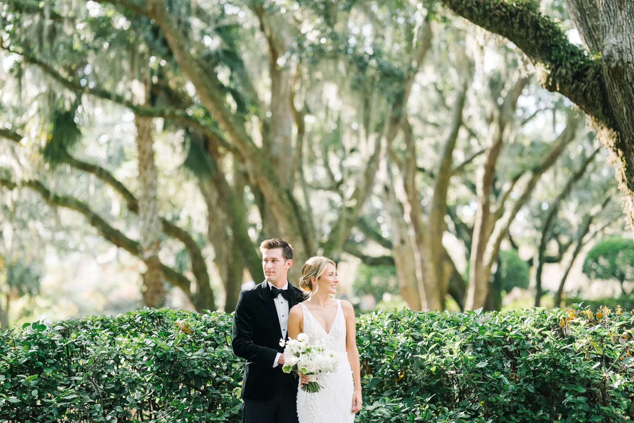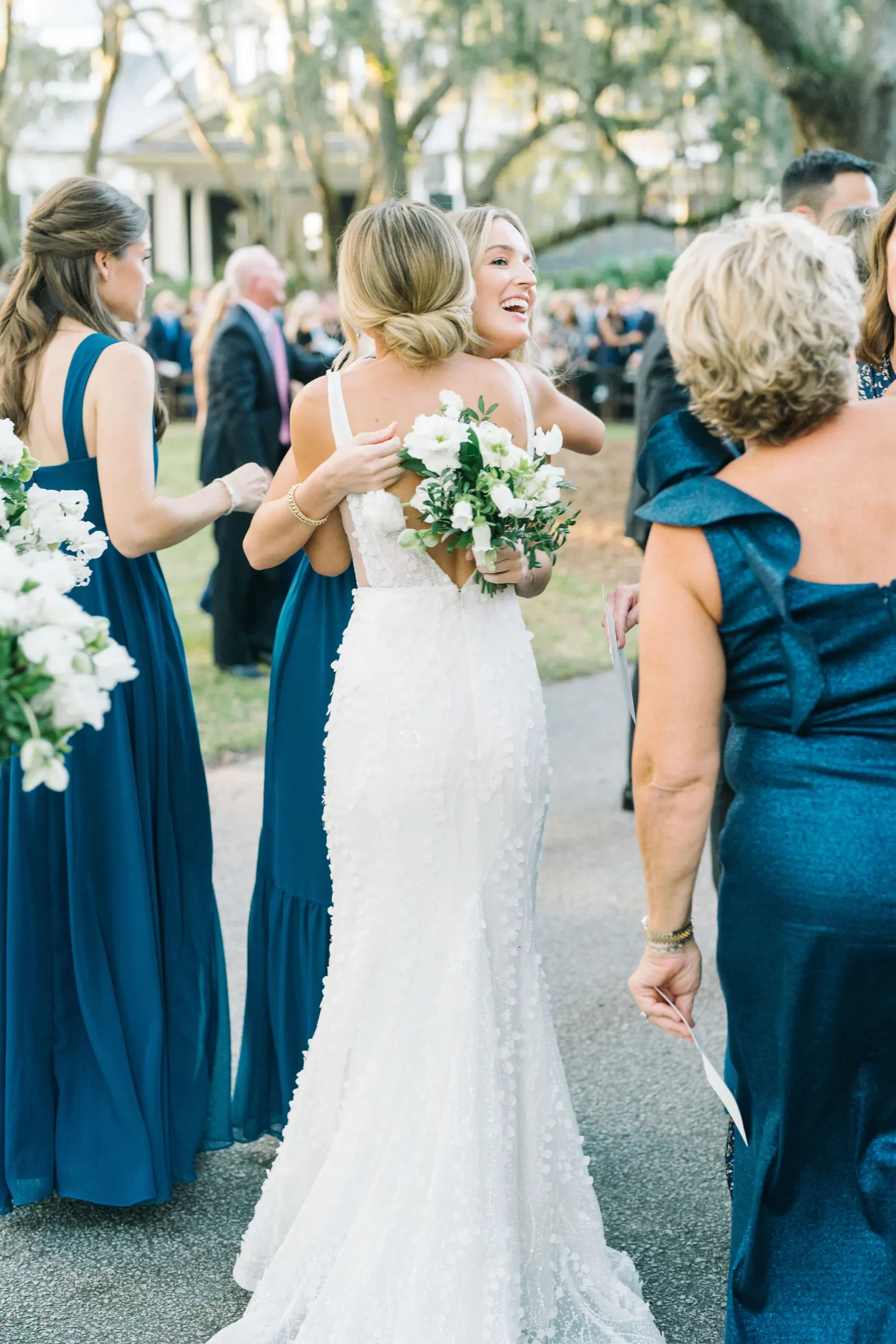 With 150 guests in attendance, Abby & Patrick exchanged vows beneath the centuries-old Live Oak trees on the front lawn of the River Course Clubhouse, with live music by The Charleston Entertainment Trio, creating the perfect atmosphere! After the ceremony, guests were welcomed to cocktail hour overlooking the 18th green, surrounded by coastal views and the prettiest golden sunlight.